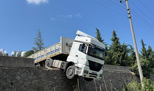ORDU'da yük indirme sırasında freni boşaldığı öne sürülen saman yüklü TIR, rampa aşağı hareket ederek beton bariyere çarptı. Ölen ve yaralananın olmadığı kazada kara yolu kısa süreliğine trafiğe kapandı.Kaza, saat 14.00 sıralarında, Altınordu ilçesi Karacaömer Mahallesi Ordu-Ulubey kara yolunda meydana geldi. Metin K. (47), üzerindeki saman yükünün indirilmesi için 66 LT 486 plakalı TIR'ı depoya yanaştırdı. Yük indirirken, şoförü içinde olmayan TIR, iddiaya göre freni boşaldı ve yola doğru hareket etti. Yolun eğimiyle hızlanan TIR, refüjü aşıp karşı şeride geçerek beton bariyere çarptı. TIR, beton bariyerin üzerinde asılı kaldı.İhbar üzerine bölgeye polis ve sağlık ekipleri sevk edildi. Kaza nedeniyle yol ulaşıma kapandı, trafik karşı şeritten kontrollü olarak sağlandı. TIR, bölgeye sevk edilen vinçle kaldırılıp, saman deposuna çekildi.'TIR'IN KAYDIĞINI GÖRÜNCE YOLU TRAFİĞE KAPATTIM'O anlarda motosikletiyle seyir halinde olan Erol Yuvarlak, yolu trafiğe kapatıp olası faciayı önleğni söyledi. TIR'ın yola kaydığını ve şoförünün peşinden koştuğunu gördüğünü anlatan Yuvarlak, "Bu esnada yolu trafiğe kapattım. Gelen araçları tek tek durdurdum. Yoksa büyük bir kaza olacaktı. Allah'a şükür kazayı önlemiş olduk. Bu anlık bir refleksti yoksa büyük bir facia olacaktı" dedi.Olayla ilgili inceleme başlatıldı.
