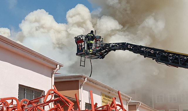 GAZİANTEP'te meslek lisesinin mobilya atölyesinde yangın çıktı. İtfaiye ekipleri bölgeye sevk edildi.Yangın, saat 09.30 sıralarında Karacaahmet Mahallesi'ndeki Şehit Serdal Şakır Mesleki ve Teknik Anadolu Lisesi'nin mobilya atölyesinde çıktı. Atölyeden duman çıktığını görenler, durumu 112 Acil Çağrı Merkezi ekiplerine bildirdi. İhbarla olay yerine çok sayıda itfaiye, polis ve sağlık ekipleri sevk edildi. Ekipler, alevleri kontrol altına almak için çalışma başlattı.