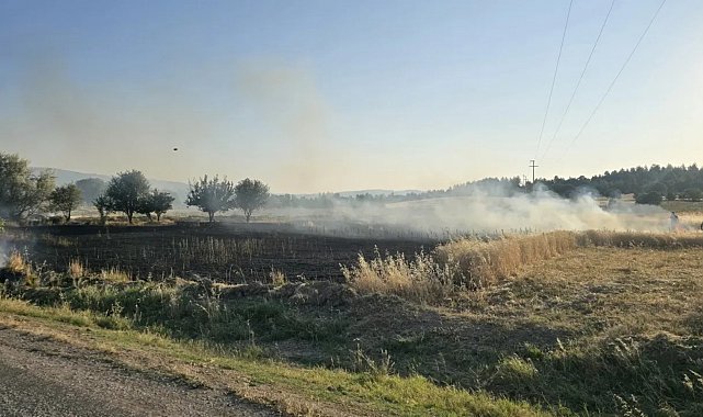 3. Gediz'de çıkan tarla yangınında, 5 dönüm ekili alan küle döndü