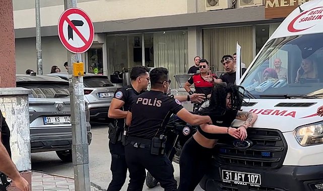 HATAY'da, aralarında çıkan tartışmada saçlarını çekerek birbirine saldıran iki kadını polis güçlükle ayırdı.