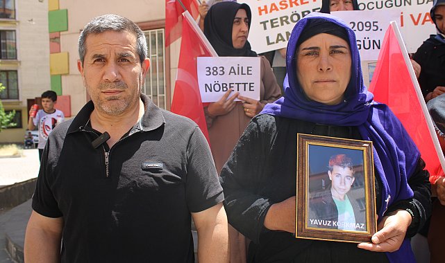 DİYARBAKIR'da HDP İl Başkanlığı önünde evlat nöbeti tutan aile sayısı, 16 yaşındayken kandırılarak dağa kaçırılan oğulları Yavuz Korkmaz için Şanlıurfa'dan gelen Hüseyin ve Güler Korkmaz çiftinin katılımıyla birlikte 383'e yükseldi.Terör örgütü PKK tarafından çocukları dağa kaçırılan aileler, 3 Eylül 2019'da HDP İl Başkanlığı binası önünde oturma eylemi başlattı. 2 bin 95 gündür sürdürülen eylemde, bugüne kadar 61 aile çocuklarına kavuştu. Evlat nöbetindeki aile sayısı, İstanbul'dayken 16 yaşındayken kandırılarak dağa kaçırılan oğulları Yavuz Korkmaz için Şanlıurfa'dan gelen Hüseyin ve Güler Korkmaz çiftinin katılımıyla 383'e yükseldi.'2 BAYRAMI BİR ARADA YAŞAMAK İSTİYORUZ'Oğlu Yavuz Korkmaz'ın 2014 yılından bu yana kayıp olduğunu belirten Hüseyin Korkmaz, "Önümüzdeki günler bayramdır, 2 bayramı bir arada yaşamak istiyoruz. Artık dayanacak gücümüz kalmadı. Oğlumuzu istiyoruz. 2014'te İstanbul'da Bağcılar ilçesinde çalışmaya gitmişti. Bir ara kayboldu, o zaman 16 yaşındaydı. O tarihten beri hiçbir haber alamadık. 2016 yılında dağa gittiğini öğrendik. Temas kurmaya çalıştık ama hiçbir şey elde edemedik. Ben Kobani'ye, Kandil'e, Kuzey Irak'a gittim. Hiçbir haber alamadık. Nereye gittiğini bilmiyorduk, biz HDP il başkanlığına geldik, onlarla yaptığımız görüşmede bize dediler ki 'Oğlunuz dağa gitmiş.' Artık dayanacak gücümüz yok, annesinin halini görüyorsunuz. Oğlumuzun gelmesini istiyoruz. Yeni süreç inşallah iyi gider, memnunuz. İnşallah bir şeyler olur, herkes evine gelir" dedi.