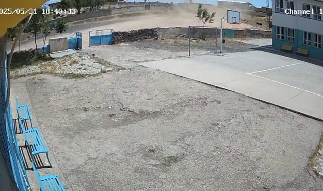 ŞANLIURFA'nın Siverek ilçesinde 'kum şeytanı' olarak bilinen ve 5 saniye süren hortum, okulun kilolarca ağırlığındaki demir kapısını yerinden söktü. O anlar okulun güvenlik kamerasına yansıdı. Olay, dün Siverek'e yaklaşık 6 kilometre uzaklıkta bulunan Bayırözü İlkokulu ve Ortaokulu'nda meydana geldi. Hava sıcaklığının 33 dereceyi bulduğu ilçede aniden oluşan kum şeytanı hortumu, toz bulutuyla birlikte okulun bahçesinin demir kapısını yerinden söküp savurdu. Yaklaşık 5 saniye süren doğa olayı sonrasında kapının yerinde olmadığını fark eden okul yetkilileri, güvenlik kameralarını inceledi. Görüntülerde kapının hortum nedeniyle yerinden söktüğü tespit edildi.