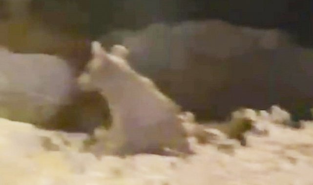 Serdar KARA/ÇUKURCA (Hakkari), (DHA)- HAKKARİ'nin Çukurca ilçe merkezine inen bozayı ile 2 yavrusu, yiyecek ararken görüntülendi
