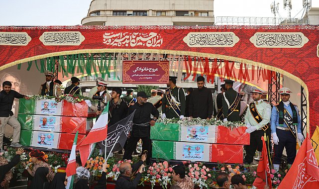 - İSRAİL'in hava saldırılarında hayatını kaybeden üst düzey askeri komutanlar, nükleer bilim insanları ve bazı siviller için Tahran'da cenaze töreni düzenlendi.İran'ın başkenti Tahran'da, İsrail'in saldırılarında hayatını kaybeden Genelkurmay Başkanı Tümgeneral Bakıri'nin de aralarında bulunduğu üst düzey askeri komutanlar, nükleer bilim insanları ve bazı sivillerden oluşan 60 kişi için toplu cenaze törenleri düzenlendi. Tahran Üniversitesi yerleşkesinde sabah saatlerinde kılınan cenaze namazlarıyla başlayan törenlere, Cumhurbaşkanı Mesud Pezeşkiyan'ın yanı sıra çok sayıda üst düzey yetkili katıldı.Tören alanında bir araya gelen on binlerce kişi, ellerinde İran bayrakları ve matemi temsil eden siyah bayraklarla dualar ve mersiyeler okudu.