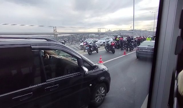 15 TEMMUZ Şehitler Köprüsü'nde motosikletli polis ekibi kaza yaptı. 2 polisin yaralandığı kaza nedeniyle trafik Anadolu Yakası istikametinde kontrollü olarak veriliyor.Kaza, 15 Temmuz Şehitler Köprüsü Avrupa'dan Anadolu Yakası'na geçişte saat 10.30 sıralarında meydana geldi. Edinilen bilgiye göre, Beşiktaş'tan Üsküdar istikametine giden motosikletli polis ekibi henüz belirlenemeyen bir nedenle kaza yaptı. Kaza sırasında 2 polis yaralandı. Kazayı görenlerin ihbarıyla olay yerine sağlık ve polis ekipleri sevk edildi. Motosikletli polisler arkadaşlarına yardım etmek üzere olay yerine gelirken, yaralanan 2 polis ambulansla hastaneye kaldırıldı.Kaza nedeniyle köprüde Anadolu Yakası istikametinde trafik yoğunluğu oluştu.