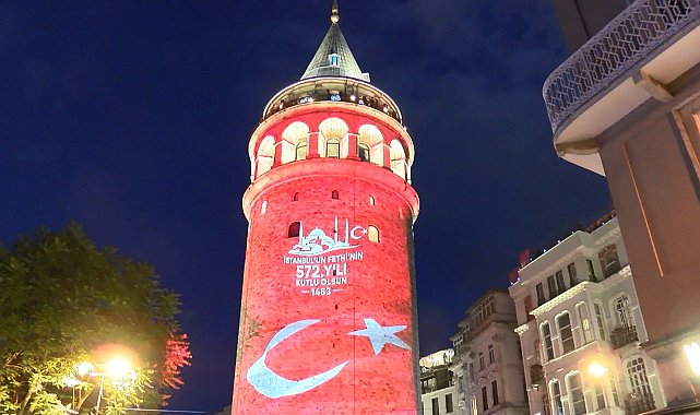 - İSTANBUL'un Fethi'nin 572'nci yıl dönümü etkinlikleri kapsamında Galata Kulesi'ne Türk Bayrağı yansıtıldı.İstanbul'un 1453 yılında Fatih Sultan Mehmet tarafından fethedilmesinin 572'inci yıl dönümü etkinlikleri kapsamında Galata Kulesi'ne Türk Bayrağı ve "İstanbul'un Fethi'nin 572. Yılı Kutlu Olsun – 1453" yazılı mesaj yansıtıldı. Galata Kulesi'ne yansıtılan Türk Bayrağı ve kutlama mesajı vatandaşların ve turistlerin ilgisini çekti. Kule önünde toplananlar bol bol fotoğraf çekti.