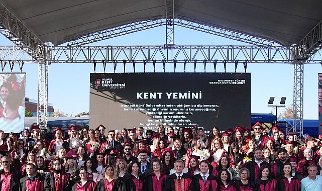 İSTANBUL Kent Üniversitesi, Kağıthane Belediyesi Hasbahçe Etkinlik Alanı'nda düzenlediği mezuniyet töreniyle 2024–2025 Akademik Yılı'nı noktaladı.Törene İstanbul Kent Üniversitesi Mütevelli Heyet Başkanı Berna Yılmaz, Kağıthane Belediye Başkanı Mevlüt Öztekin, Kağıthane Belediye Başkan Yardımcısı Dr. Nedret Apaydın ve Kağıthane Belediyesi Kültür ve Sosyal İşler Müdürü Eyüp Albayrak da katılarak mezunlara destek verdi.Tören, İstanbul Kent Üniversitesi Rektörü Prof. Dr. Necmettin Atsü, Mütevelli Heyet Başkanı Berna Yılmaz ve Kağıthane Belediye Başkanı Mevlüt Öztekin'in konuşmalarıyla başladı. Lisansüstü Eğitim Enstitüsü,Fakülteler ve yüksekokullar bazında düzenlenen törenlerde, dereceye giren öğrenciler sahneye davet edilerek başarıları onurlandırıldı. Üniversitenin Psikoloji Bölümü birincisi Tuğçe Yaldız mezunlar adına konuşma yaparak duygularını paylaştı ve ödülünü Mütevelli Heyet Başkanı Berna Yılmaz'ın elinden aldı.Törenin devamında Diş Hekimliği Fakültesi, Sağlık Bilimleri Fakültesi, Sanat ve Tasarım Fakültesi, İktisadi, İdari ve Sosyal Bilimler Fakültesi, Sağlık Hizmetleri Meslek Yüksekokulu, Meslek Yüksekokulu ile çeşitli yüksek lisans programlarından mezun olan öğrenciler diplomalarını aldı. Etkinlik, fakülteler tarafından hazırlanan meslek yemini törenleri ve kortej yürüyüşü ile devam etti. Mezuniyet töreni, öğrencilerin ve ailelerinin katılımıyla kutlandı. İstanbul Kent Üniversitesi, tarafından yapılan açıklamada "Mezunlarımızı çağdaş, donanımlı ve topluma değer katan bireyler olarak uğurlamanın gururunu yaşıyor" ifadelerine yer verildi.