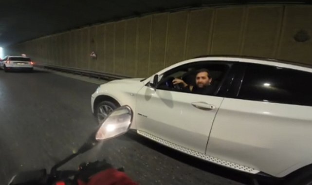 TEM Otoyolu'nda makas attığı öne sürülen otomobil sürücüsüyle, kendisini uyaran motosikletli arasında tartışma çıktı. O anlar kask kamerasına yansıdı. Görüntülerde sürücünün motosikletliye 'Sen polis misin' dediği anlar yer aldı. Olay, dün saat 16.00 sıralarında TEM Otoyolu'nun Sultangazi mevkiinde meydana geldi. İddiaya göre, seyir halindeyken makas atan otomobil sürücüsüne, arkadan gelen motosikletli tepki gösterdi. Motosikletli, Cumhuriyet Mahallesi tünel girişinde korna çalarak otomobili durdurdu. Otomobil sürücüsüne insanların hayatını tehlikeye attığını söyleyen motosikletli ile sürücü arasında tartışma yaşandı. Otomobil sürücüsü motosikletliye, 'Sen polis misin' diye karşılık verdi. İkili arasında yaşanan tartışma motosikletlinin kask kamerasına yansıdı.