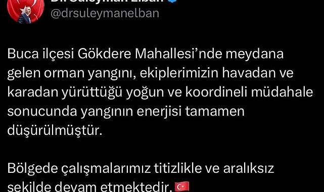 Haberler Yayınlanma: 28 Temmuz 2025 - 18:10 İzmir'de orman yangını 'ENERJİSİ TAMAMEN DÜŞÜRÜLDÜ'İzmir Valisi Süleyman Elban, yangınla ilgili sosyal medya hesabından açıklama yaptı Haberler 28 Temmuz 2025 - 18:10 TAKİP ET Yazdır A Büyüt A Küçült Yorumlar FOTOĞRAFLI DHA EDİTÖR DHA - Haber Editörü YORUMLAR adlı kullanıcıya cevap x Gönder İlginizi Çekebilir Genç doktorun korkunç ölümü Gündemde hangi konular var? MEB’de kritik güvenlik toplantısı Okul saldırıları Meclis gündeminde Son Haberler Bursa'da yeni haftada hava nasıl olacak? Cumhurbaşkanı Erdoğan'dan şampiyon Bursaspor'a tebrik Başkan Aydın: Süper Lig’e Bir Yıl Kaldı Bursa Büyükşehir Belediyespor, Avrupa'da avantajı yakaladı Genç doktorun korkunç ölümü Otomobille kamyonet çarpıştı: 1 ölü, 3 yaralı Otomobille kamyonet çarpıştı: 1 ölü, 3 yaralı