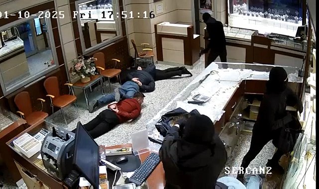 SOYGUN, KUYUMCUNUN GÜVENLİK KAMERASINA DA YANSIMIŞKarabük'ün Safranbolu ilçesinde yüzü kar maskeli 3 kişinin iş merkezinde bulunan kuyumcuyu soyduğu anlar, iş yerinin güvenlik kamerasına yansıdı