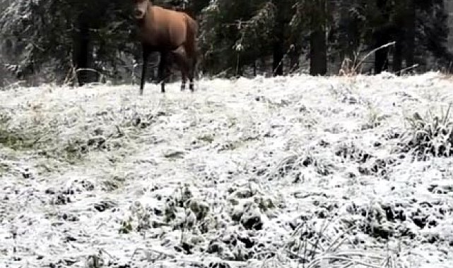 BOLU'da karla kaplı ormanda doğa gezisi yapan bir vatandaş tarafından kızılgeyik görüntülendi.Yüzde 65'i ormanlarla kaplı Bolu'da doğa gezisine çıkan Sefa Eskioğlu, karlar içinde ilerleyen bir kızılgeyiği fark etti. Eskioğlu, o anları cep telefonuyla kaydetti. Karla kaplı ağaçların arasında dolaşan kızılgeyik, daha sonra gözden kayboldu.