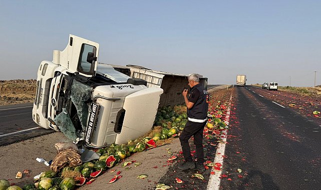 ŞIRNAK'ta devrilen karpuz yüklü TIR'ın şoförü İbrahim Arslan, ağır yaralandı. Kaza, sabah saatlerinde Cizre-Nusaybin kara yolu, Köyceğiz mevkiinde meydana geldi. İbrahim Aslan yönetimindeki 31 RZ 030 plakalı TIR, kontrolden çıkarak yol ortasındaki yağmur suyu kanalına devrildi. TIR şoförü ağır yaralanırken, dorsedeki karpuzlar da yola saçıldı. İhbarla olay yerine sağlık, itfaiye ve jandarma ekipleri sevk edildi. Aslan, ilk müdahalenin ardından Cizre Devlet Hastanesi'ne kaldırıldı. Aslan'ın durumunun ciddiyetini koruduğu belirtildi. Kazaya ilişkin soruşturma başlatıldı.