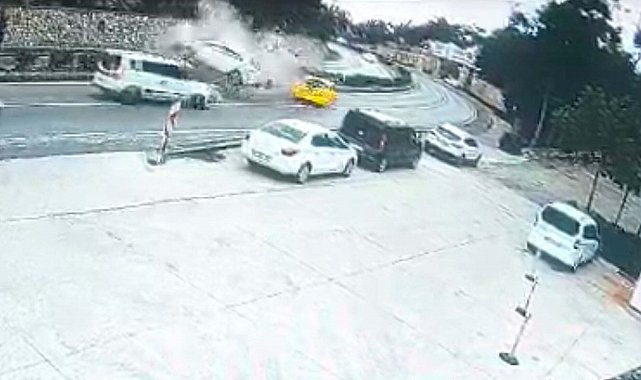 MUĞLA'nın Bodrum ilçesinde refüjü aşıp karşı şeride geçen otomobil, taksi ve kamyonete çarptı. 2 kişinin yaralandığı kaza, bir iş yerinin güvenlik kamerasına yansıdı.Kaza, saat 08.00 sıralarında, Torba Mahallesi Çamlık mevkisinde meydana geldi. Bodrum'dan Milas yönüne giden 72 ABC 343 plakalı otomobil, sürücüsünün direksiyon hakimiyetini kaybetmesi sonucu kontrolden çıktı. Refüjü aşan otomobil, karşı şeride geçip, taksi ve kamyonete çarpıp, devrildi. İhbar üzerine bölgeye sağlık ve polis ekipleri sevk edildi. Kazada hafif yaralanan 2 kişi, çevre hastanelere kaldırıldı. Kaza, bölgedeki bir iş yerinin güvenlik kamerasına yansıdı.