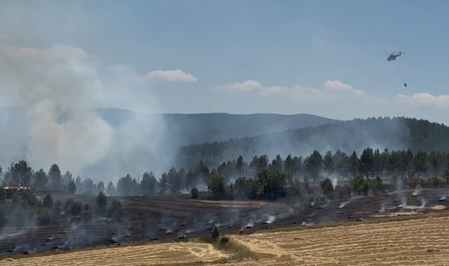 KASTAMONU'nun Taşköprü ilçesinde anız yangınında alevler ormana sıçradı. Havadan ve karadan yapılan müdahaleyle kontrol altına alınan yangında 10 hektar alan zarar gördü.Taşköprü ilçesine bağlı Örenli köyünde tarım arazisindeki balya makinesinden çıkan kıvılcımın sapları tutuşturması sonucu öğle saatlerinde anız yangını çıktı. Rüzgarın da etkisiyle geniş bir alana yayılan alevler, yakındaki ormana da sıçradı. Çevredekilerin ihbarı üzerine bölgeye Orman Bölge Müdürlüğü ile itfaiye ekipleri sevk edildi. İlçede hazır bulundurulan yangın söndürme helikopteri de söndürme çalışmasında kullanıldı. Ekiplerin çalışması sonucu yangın kontrol altına alınırken, soğutma çalışmaları ise devam ediyor. İlk belirlemelere göre yangında, yaklaşık 10 hektar alan zarar gördü.