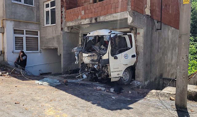 Sürücüsünün frenlerin tutmadığını iddia ettiği kamyonet çekiciyle garajdan çıkarılırken, kazaya ilişkin soruşturma başlatıldı.