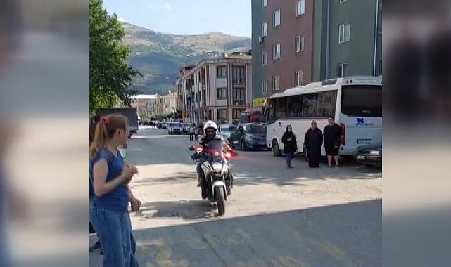 BURSA'nın Gemlik ilçesinde, Liselere Geçiş Sistemi (LGS) kapsamındaki merkezi sınava girmek için geldiği okul önünde kimliğini unuttuğunu fark eden öğrenci, motosikletli trafik polisi tarafından sınava yetiştirildi. Milli Eğitim Bakanlığı tarafından 8'inci sınıf öğrencileri için düzenlenen LGS'ye, Bursa'da 139 okul, 2 bin 618 salonda, 40 bin 417 öğrenci katıldı. 5 bin 800 öğretmenin görev aldığı sınav kapsamında 810 polis de okul çevrelerinde güvenliği sağladı. Saat 09.30'da başlayan ve Türkçe, T.C. İnkılap Tarihi ve Atatürkçülük, Din Kültürü ve Ahlak Bilgisi ile Yabancı Dil sorularının yer aldığı ilk oturum saat 10.45'te sona ererken, 11.30'da başlayan 2'nci oturum ise saat 12.50'de bitti. Gemlik ilçesi Şehit Esat Akbaba Okulu'nda LGS'ye girecek bir öğrenci, kimliğini evinde unuttuğunu fark etti. Öğrenciyi, evine götürün ve kimliğini almasını sağlayan motosikletli trafik polisi, son anda onu sınava yetiştirdi. Okul çevresinde çocuklarını bekleyen veliler de o anları cep telefonuyla görüntüledi.