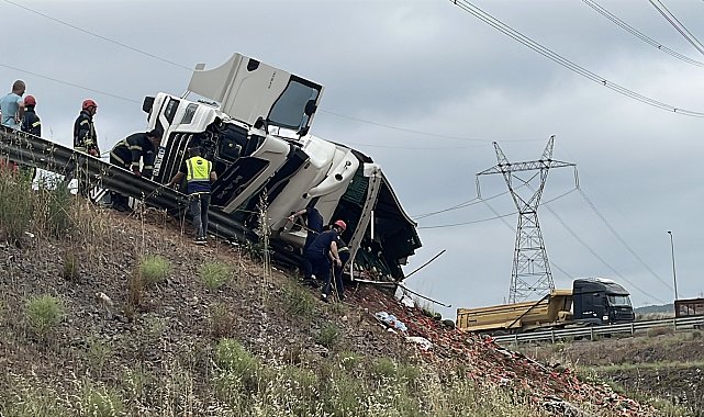 KOCAELİ'nin Gebze ilçesinde Kuzey Marmara Otoyolu bağlantında şoförünün virajı alamadığı karpuz yüklü TIR, devrildi. Kazada şoför Hakan S. yaşamını yitirdi, 3 kişi yaralandı.Kaza, saat 17.00 sıralarında Gebze ilçesi Balçık Kavşağı Kuzey Marmara Otoyolu bağlantısında meydana geldi. Hakan S. yönetimindeki 81 ACL 470 plakalı karpuz yüklü TIR, şoförünün virajda direksiyon kontrolünü yitirmesi sonucu yol kenarındaki bariyerin üzerine devrildi. Kazada Hakan S. ve araçtaki E.D., H.B. ile F.D., TIR'ın ezilen kabininde sıkıştı. Dorsede bulunan karpuzlar ise yeşillik alana saçıldı. Çevredekilerin 112 Acil Çağrı Merkezi'ne ihbarı üzerine bölgeye itfaiye, sağlık ve jandarma ekipleri sevk edildi. İtfaiye ekiplerinin müdahalesiyle sıkıştıkları yerden çıkarılan E.D., H.B. ile F.D hastaneye kaldırıldı. Sağlık ekibinin yaptığı kontrolde ise Hakan S.'nin yaşamını yitirdiği belirlendi. TIR yoldan kaldırılırken, Hakan S.'nin cansız bedeni de araçtan çıkartıldı. Hakan S.'nin cenazesi otopsi işlemleri için morga götürüldü. Kazayla ilgili soruşturma başlatıldı.