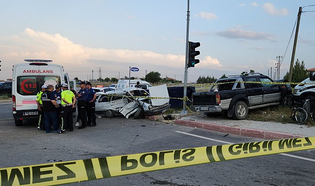 KONYA'da kamyonet ile otomobilin çarpıştığı kazada Kadir (71) ile eşi Fatma Yıldız (70) hayatını kaybetti, 4 kişi de yaralandı.Kaza, saat 18.00 sıralarında merkez Meram ilçesi Gödene Mahallesi Hatunsaray Caddesi ile Memleket Caddesi Kavşağı'nda meydana geldi. Kadir Yıldız idaresindeki 42 Y 5492 plakalı otomobil ile Ali Başişçi'nin kullandığı 34 AP 6806 plakalı kamyonet kavşakta çarpıştı. Araçlar, çarpışmanın etkisiyle yol kenarındaki arazide park halindeki kamyona çarparak durdu. Kazayı görenlerin ihbarı üzerine olay yerine sağlık ve polis ekipleri sevk edildi. Olay yerine gelen sağlık ekipleri otomobilde bulunan Fatma Yıldız'ın olay yerinde öldüğünü belirledi. Ağır yaralanan eşi Kadir Yıldız ise ambulansla Meram Devlet Hastanesi'ne sevk edildi. Kamyonette bulunan sürücü Ali Başişçi, Durmuş Başişçi, Mümine Feride Başişçi ve Zeycan Karaağaç da, ambulanslarla Konya Şehir Hastanesi'ne götürüldü. Ağır yaralanan Sürücü Kadir Yıldız, yapılan müdahaleye rağmen kurtarılamayarak hayatını kaybetti. Çiftin cenazeleri otopsi için Konya Adli Tıp Kurumuna götürülürken, polis kazayla ilgili inceleme başlattı.