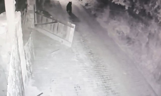 KARABÜK'te köye inen boz ayının sokakta yürüyerek bahçenin kapısını açtığı anlar, güvenlik kamerasına yansıdı.Olay, dün gece saatlerinde merkeze bağlı Bulak köyünde meydana geldi. Yiyecek aramak için köye inen boz ayı, bir süre sokakta yürüdükten sonra bir evin bahçesinin kapısını açtı. Ayı, daha sonra koşarak gözden kayboldu. Ayının sokakta koştuğu ve kapıyı açtığı anlar güvenlik kamerasına yansıdı.