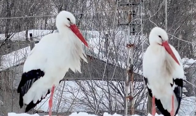 ERZİNCAN merkeze bağlı Kilimli köyünü mesken tutan leylekler, kışı göç etmeyip, burada geçirdi.Merkeze bağlı Kilimli köyünü mesken tutan leylekler, yaz kış yuvalarını terk etmiyor. Erzincan Doğa Koruma ve Milli Parklar Şube Müdürlüğü tarafından dronla kayıt altına alınan leyleklerin görüntüleri, Doğa Koruma Milli Parklar Genel Müdürlüğü tarafından sosyal medya hesabından paylaşıldı. Paylaşımda, "Kim gidecek şimdi onca yolu. Bazı leylekler göçü sevmez. Belki de Erzincan Kilimli köyü sakinlerini çok misafirperver gördüklerinden gidemezler. Genel Müdürlük olarak pek çok kuş türünün göçünü takip ederken bu leyleklerimizin kalışını izliyoruz" ifadeleri kullanıldı.