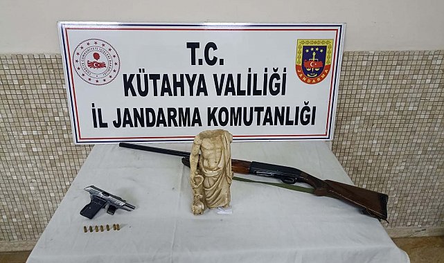 KÜTAHYA'nın Emet ilçesinde, jandarma ekiplerinin baskın yaptığı evde milattan önce 5'inci yüzyıla ait olduğu belirlenen Yunan mitolojisine göre tıp ve sağlık tanrısı Asklepios heykeli ele geçirildi.Emet Jandarma Komutanlığı ekipleri, Kırgıl köyünde oturan C.B.'nin (31) evinde tarihi eser olduğu bilgisini aldı. Bir süre izlenen şüphelinin evine Cumhuriyet savcılığı talimatıyla baskın yapıldı. Evdeki aramalarda milattan önce 5'inci yüzyıla ait olduğu değerlendirilen Yunan mitolojisine göre tıp ve sağlık tanrısı Asklepios heykeli, ruhsatsız tabanca, 7 adet fişek ve tabancaya ait şarjör, yarı otomatik av tüfeği ele geçirildi. Şüpheli C.B.'nin ifadesi alınırken, hakkında adli soruşturma başlatıldı.