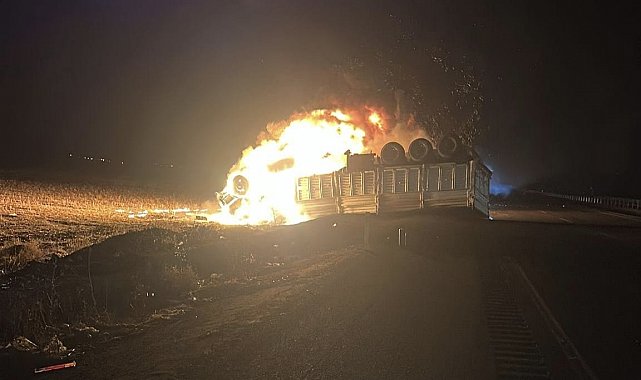 MARDİN'in Nusaybin ilçesinde şoförünün kontrolünden çıkarak devrilen TIR, alev aldı. TIR'da mahsur kalan şoför Mehmet Çiftçi (50), yanarak hayatını kaybetti.Kaza, saat 20.30 sıralarında Nusaybin ilçesi Odabaşı Mahallesi mevkisinde meydana geldi. Mustafa Çiftçi yönetimindeki plakası belirlenemeyen TIR, şoförünün direksiyon kontrolünü yitirmesi sonucu devrilip, motor kısmından alev aldı. Çiftçi yanan TIR'da mahsur kalırken, ihbarla bölgeye sağlık, itfaiye ve jandarma ekipleri sevk edildi. Yangın, ekiplerin müdahalesiyle kontrol altına alınarak söndürüldü. TIR'da yapılan incelemede, Çiftçi'nin yanarak hayatını kaybettiği belirlendi. Çiftçi'nin cenazesi, kaza yerindeki incelemenin ardından Nusaybin Devlet Hastanesi'nin morguna götürüldü. Kazayla ilgili soruşturma başlatıldı.