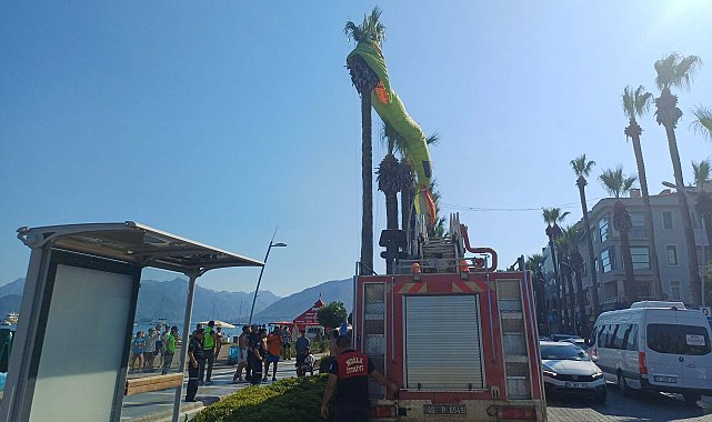 MUĞLA'nın Marmaris ilçesinde deniz paraşütü güvenli iniş noktası ararken, ters rüzgar nedeniyle sahildeki palmiye ağacına takıldı. İki paraşütçü itfaiye ekipleri tarafından kurtarılırken, sağlık durumlarının iyi olduğu öğrenildi.Marmaris'teki bir su sporları işletmesine bağlı paraşütle havalanan iki kişi, saat 17.00 sıralarında iniş için uygun yer aramaya başladı. bu sırada rüzgar aniden yön değiştirdi. Bunun üzerine paraşüt, sahildeki palmiye ağaçlarından birine takıldı. Çevredekilerin ihbarı üzerine olay yerine itfaiye ekipleri sevk edildi. Paraşüt ve iki paraşütçü kısa sürede güvenli şekilde ağaçtan indirdi. Kazayı yara almadan atlatan iki paraşütçünün sağlık durumlarının iyi olduğu öğrenildi.