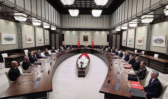 MİLLİ Güvenlik Kurulu (MGK) toplantısının ardından yayımlanan bildiride, "Bölücü terör örgütünün kendisini feshi, silah bırakması ve silahsızlanması ile tüm uzantılarının tasfiyesi sürecinin yakından ve titizlikle takibine devam edileceğinin altı çizilmiştir" denildi.Cumhurbaşkanı Recep Tayyip Erdoğan başkanlığında gerçekleşen MGK toplantısı, yaklaşık 2,5 saat sürdü. Toplantının ardından MGK bildirisi yayımlandı. Bildiride, "PKK/KCK-PYD/YPG, FETÖ ve DEAŞ terör örgütleri başta olmak üzere millî birlik ve beraberliğimiz ile bekamıza yönelik her türlü tehdit ve tehlikeye karşı yurt içinde ve yurt dışında azim, kararlılık ve başarıyla sürdürülen operasyonlar ile son dönemdeki uluslararası gelişmeler hakkında kurula bilgi sunulmuştur. Aziz şehitlerimizin ve gazilerimizin fedakârlığı, milletimizin feraseti ve azmi ile devletimizin dirayeti neticesinde terörsüz Türkiye hedefine ulaşılmasıyla; millî birlik ve beraberliğimizin daha da pekişeceği, tüm vatandaşlarımızın huzur ve refahının artacağı, ülkemizin sosyoekonomik gelişiminin ve kalkınma sürecinin hızlanacağı, demokrasimizin güçleneceği ifade edilmiştir. Bu kapsamda; bölücü terör örgütünün kendisini feshi, silah bırakması ve silahsızlanması ile tüm uzantılarının tasfiyesi sürecinin yakından ve titizlikle takibine devam edileceğinin altı çizilmiştir. Türkiye'nin, Suriye'de yeni yönetimin kalıcı huzur ve istikrarın sağlanması ile ülkenin tüm terör örgütlerinden arındırılması yönündeki gayretlerine destek vermeye devam edeceği belirtilmiş; istikrarı bozmak maksadıyla kurgulanan kışkırtmaların dikkatle izlendiği ve Suriye'nin toprak bütünlüğü, tüm dinî, mezhebî ve etnik kimlikleri ile üniter yapısının muhafazasına matuf yaklaşımın korunacağı vurgulanmıştır" denildi.GAZZE'NİN AYAĞA KALDIRILMASI GAYRETLERİ SÜRDÜRÜLECEKFilistin meselesine ilişkin son durumun ele alındığına işaret edilen bildiride, "İsrail'in ısrarla tatbik ettiği soykırım, istila ve işgal politikalarına son vererek bir an evvel ateşkes rejimine geri dönmesi ile insani yardımların engelsiz ve yeterli şekilde bölgeye ulaştırılması gerektiğine dikkat çekilmiş; Gazze halkının öz vatanlarında güven, huzur ve refah içerisinde özgürce yaşayabilmesi için atılacak meşru adımların ve harap edilen Gazze'nin yeniden ayağa kaldırılması gayretlerinin sürdürüleceği belirtilmiştir. Rusya-Ukrayna Savaşı'nda müzakerelere ve diplomatik çabalara öncelik veren bir sürece girilmesinden memnuniyet duyulduğu vurgulanmış; ülkemizin, müteakip dönemde de sürecin adil ve onurlu bir anlaşma ile neticelenmesi ve kalıcı barışın tesisi için inisiyatif üstlenmeye devam edeceği ifade edilmiştir. Bosna Hersek'in egemenliğine ve toprak bütünlüğüne yönelik sarsılmaz desteğimiz bir kez daha teyit edilmiş; Türkiye'nin, Balkanlar'daki huzur ortamına menfi tesir edebilecek tüm gelişmeleri yakından izleyerek bölgedeki barış ve istikrarın muhafazası için kuşatıcı ve kucaklayıcı bir anlayışla gayret sarf etmeyi sürdüreceği kaydedilmiştir. Türkiye'nin; jeopolitik konumunun sunduğu imkânlar ile üstün askerî gücü ve yeteneklerine ilaveten gelişmiş ve üretken savunma sanayisinden istifadeyle içinde bulunduğu ittifaklara yaptığı katkıların yanı sıra güvenlik ve istikrar alanında iş birliği imkânı bulunan diğer ortaklarına da benzer katkılar sunarak tüm bölgemizin refah, barış ve huzuruna hizmet edeceği belirtilmiştir. Bu süreçte, bilhassa Türkiye-Avrupa Birliği ilişkilerinin genelindeki canlanmaya ve Avrupa'nın güvenliğine yönelik planlamalarda Türkiye'nin vazgeçilmez rolüne işaret edilmiştir" ifadeleri kullanıldı.