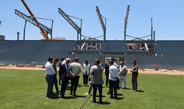 2'nci Lig'e yükselen Muğlaspor, yeni sezonda stadına da kavuşacak. Geçen yıl depreme dayanıksız olduğu için yıkılan Muğla Atatürk Stadı'nın tribünlerinin yeniden inşaat çalışmaları tüm hızıyla sürüyor. Yeşil-beyazlılarda Başkan Menaf Kıyanç ve yeni seçilen yönetim kurulu üyeleri, yapımı devam eden Muğla Atatürk Stadyumu'nda incelemelerde bulundu. Yeni sezona hazırlık sürecinde stadyum çalışmalarını yerinde takip eden Başkan Kıyanç ve yönetim kurulu, yüklenici firma yetkililerinden sürece dair detaylı bilgi aldı. Yönetim, yapım aşamasındaki eksiklikler ve teknik ilerlemeler hakkında değerlendirmelerde bulunarak, projenin bir an önce tamamlanarak futbolseverlerin hizmetine sunulması temennisinde bulundu. Modern mimarisi ve altyapısıyla bölgenin en önemli spor tesislerinden biri olmaya aday olan yeni Atatürk Stadyumu'nun, Muğlaspor'un hedeflerine ulaşma yolunda önemli bir yapı taşı olacağı vurgulandı.