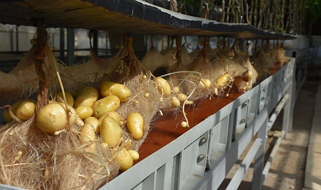 TÜRKİYE'nin patates üretiminde tek Ar-Ge merkezi olan Tarım ve Orman Bakanlığı Niğde Patates Araştırma Enstitüsü Müdürlüğü, yerli ve milli patates çeşitlerinin elit kademe havada, suda ve toprakta mini yumru üretiminde önemli başarılar elde etti.Yıllık 2 milyon mini yumru üretim kapasitesine sahip olan Niğde Patates Araştırma Enstitüsü, ülkenin patates tohumluğu ihtiyacının yerli imkanlarla karşılanmasına öncülük etmeyi sürdürüyor. Enstitü ayrıca, sektör taleplerine göre kontrollü, ekonomik ve çevre dostu üretim modeliyle hizmet vermeye devam ediyor. Enstitü bünyesinde 12 ay boyunca aralıksız süren mini yumru üretimi, havada (aeroponik), suda (hidroponik) ve topraklı üretim olmak üzere üç farklı sistemin bir arada uygulandığı ilk ve tek merkez olma özelliğini taşıyor. Aeroponik sistemde bitkilerin kökleri asılı şekilde besin çözeltisiyle beslenirken, hidroponik sistemde elit kademedeki mini yumrular su içerisinde yetiştiriliyor. Bu yöntemlerle; aeroponik sistemde bitki başına 100-150, hidroponik sistemde ise 50-60 mini yumru üretimi gerçekleştiriliyor.Hasat dönemine gelen hidroponik sistemle üretilen süper elit kademedeki mini yumruların hasadı tamamlandı. Tarım ve Orman Bakanlığı'nın destekleriyle modernize edilen ve kapasitesi artırılan sistem sayesinde yüksek verimli ve kaliteli ürünler elde edildi. Niğde Patates Araştırma Enstitüsü Müdürü Uğur Pırlak, enstitünün bugüne kadar geliştirdiği 11 yerli ve milli patates çeşidinden 8'ini özel sektöre devrederek patates sektörüne önemli katkılar sağladığını söyledi.
