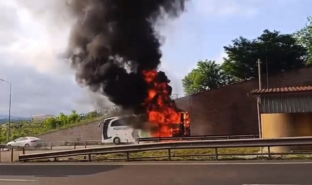 ORDU'da seyir halindeki yolcu otobüsünün motor kısmında çıkan yangını fark eden sürücü aracı durdurup, yolcuları tahliye etti. Kısa sürede alev topuna dönen otobüsteki yangın, itfaiyenin müdahalesiyle söndürülürken, araç kullanılamaz hale geldi. Otobüsün alev alev yandığı anlar cep telefonu kamerasıyla kaydedildi. Olay, saat 17.30 sıralarında Altınordu ilçesi Yeni Çevre Yolu Boztepe Tüneli çıkışında meydana geldi. Ordu'dan 37 yolcu ile İstanbul'a giden Servet Çise yönetimindeki 52 ED 334 plakalı yolcu otobüsünün motor bölümünde yangın çıktı. Dumanların yayıldığını fark eden şoför Çise, otobüsü emniyet şeridinde durdurarak 37 yolcuyu tahliye etti. Motor kısmında çıkan yangında alevler bir anda otobüsünün tamamını sardı. Durumun 112 Acil Çağrı Merkezi'ne bildirilmesi üzerine olay yerine itfaiye ve sağlık ekipleri sevk edildi. İtfaiye ekiplerinin müdahalesiyle yangın söndürülürken, otobüs kullanılmaz hale geldi. Ölen ya da yaralananın olmadığı olayda yolcuların başka bir araçla yollarına devam ettiği öğrenildi. Otobüsün alev alev yandığı anlar ise cep telefonu kamerasıyla kaydedildi. Yangınla ilgili soruşturma başlatıldı.
