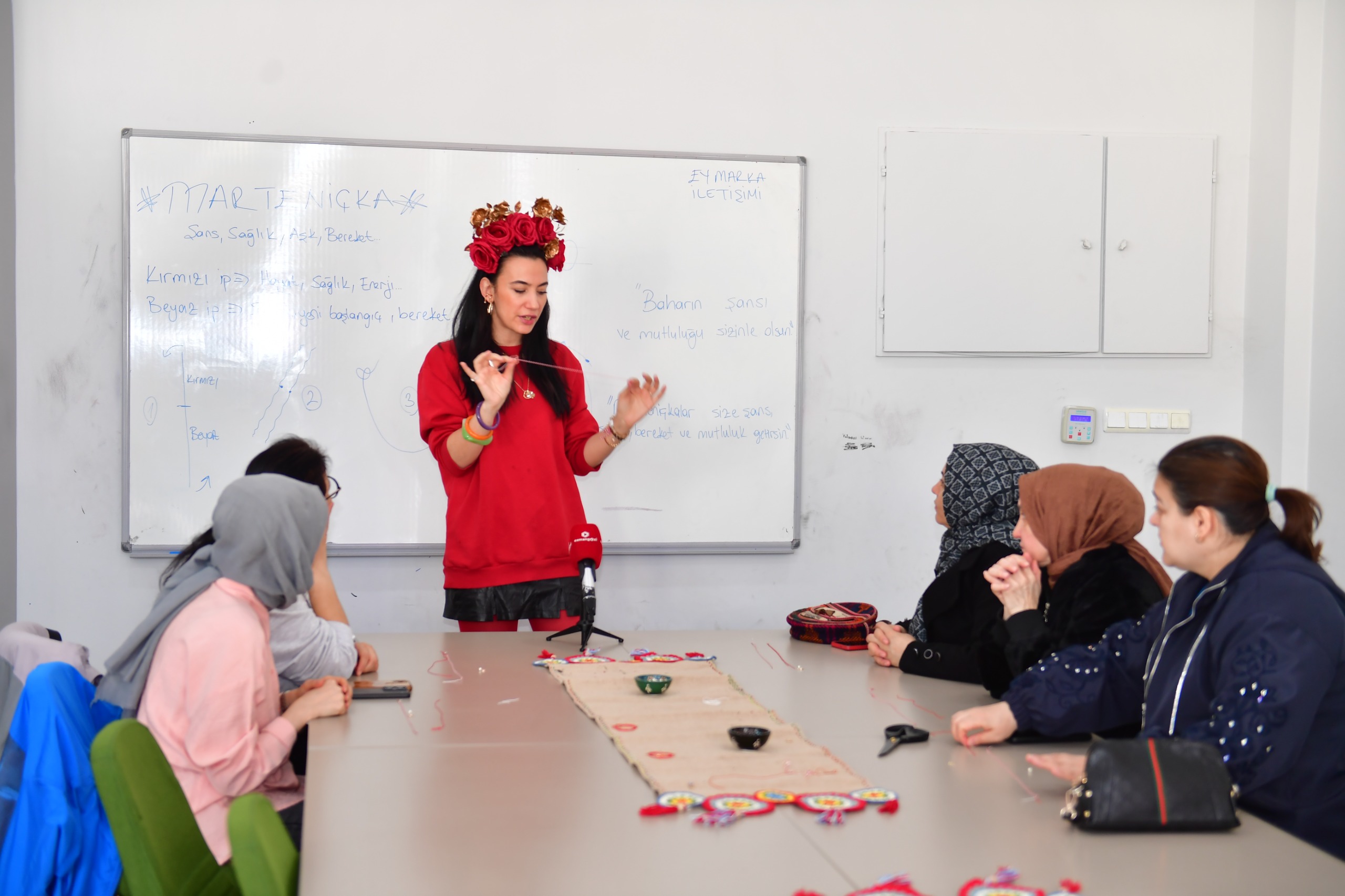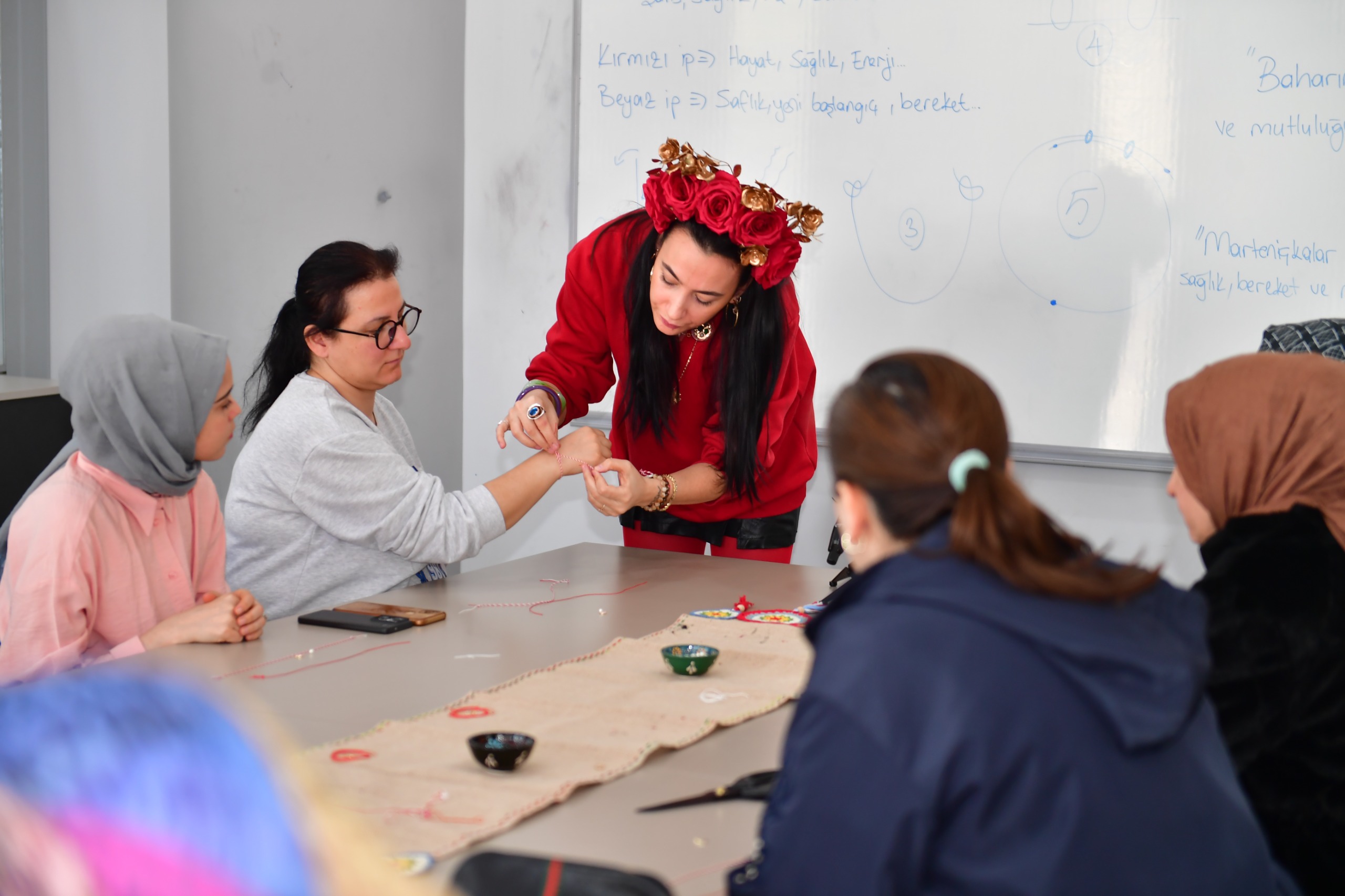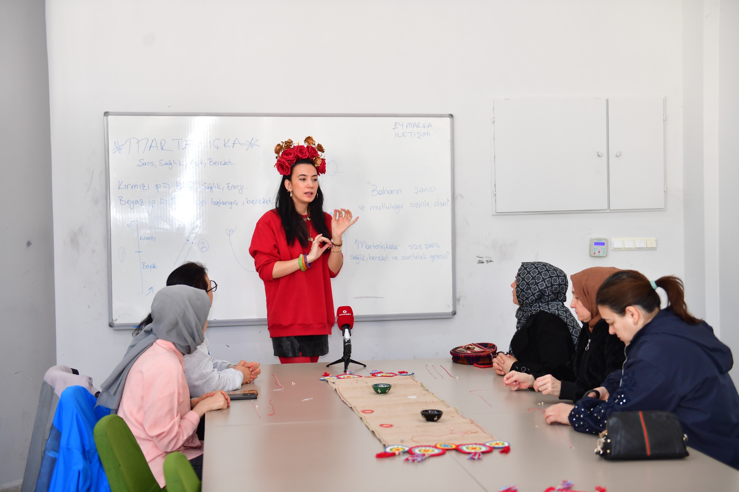 Osmangazi Belediyesi’nin düzenlediği ‘Marteniçka Atölyesi’, kadınlara Balkan kökenli geleneksel bir bileklik kültürünü tanıma ve uygulama fırsatı sundu.Atölye çalışmalarıyla Osmangazi’deki vatandaşları üretime ve kültürel paylaşımına teşvik ederek, kent yaşamına değer katan Osmangazi Belediyesi, baharın gelişini müjdeleyen ‘Marteniçka Atölyesi’ni gerçekleştirdi. Demirtaş Kültür Merkezi’nde düzenlenen atölyede kadınlar, marteniçka bilekliklerini yaparak el becerilerini geliştirme şansı buldu. Samimi ve keyifli bir ortamda gerçekleşen etkinlikte kadınlar, marteniçka geleneğinin kökeni, anlamı ve Balkan kültüründeki yeri hakkında da bilgilendirildi.“Baharın Gelişini Semboller”1 Mart’tan itibaren baharın gelişini müjdeleyen bir Balkan kültürü olan marteniçkanın yapımına ilişkin keyif dolu bir çalışma gerçekleştirdiklerini belirten Marteniçka Atölyesi Eğitmeni Ece Gündüz, geleneğe ilişkin verdiği bilgilerde “Marteniçka, Balkanlar’dan gelen, baharın gelişini sembolleyen bir bileklik kültürüdür. Kırmızı ve beyaz renklerindedir. Kırmızı rengi, sağlığı, bolluğu ve bereketi sembolize ederken, beyaz rengi de saflığı ve uzun ömürlülüğü sembolize eder. Bu bilekliği bileğimize takarız ve sonrasında bir leyleği gördüğümüzde, bilekliği bir ağaç dalına asarız.” ifadelerini kullandı.Eğitmen Ece Gündüz, desteklerinden ötürü Osmangazi Belediyesi ve Osmangazi Belediye Başkanı Erkan Aydın’a da teşekkürlerini sunarak, baharın bolluk, bereket ve sevgiyle geçmesi temennisinde bulundu.Atölyeye katılan kadınlar da, etkinliğin kendileri için hem öğretici hem de keyifli geçtiğini ifade ederek Osmangazi Belediyesi’ne ve Osmangazi Belediye Başkanı Erkan Aydın’a teşekkür etti.