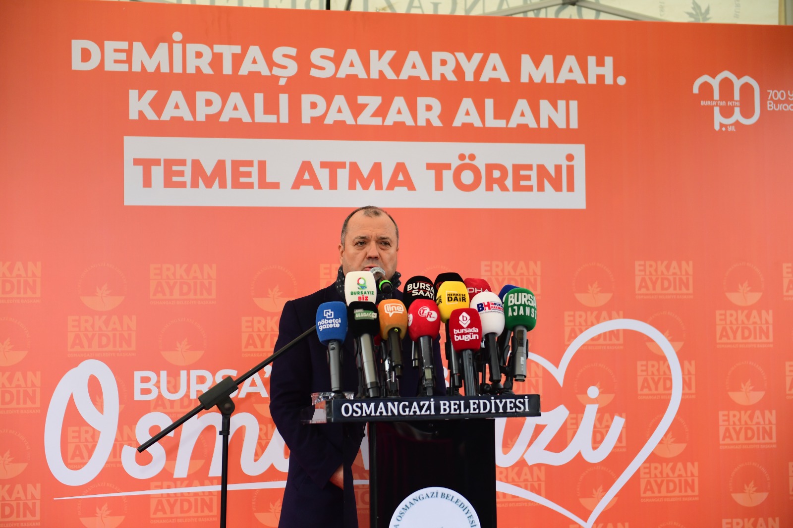 Sosyal yaşamı destekleyen projelerine hız kesmeden devam eden Osmangazi Belediyesi, mahalle ölçeğinde yaşam standartlarını yükseltme amacıyla Demirtaş Sakarya Mahallesi’ndeki kapalı pazar yerinin temelini düzenlenen törenle birlikte attı. Osmangazi Belediye Başkanı Erkan Aydın, “Tek derdimiz; Osmangazi’de yaşayan yaklaşık 1 milyon yurttaşımıza elimizden gelen en iyi hizmeti sunmak.” ifadelerini kullandı.