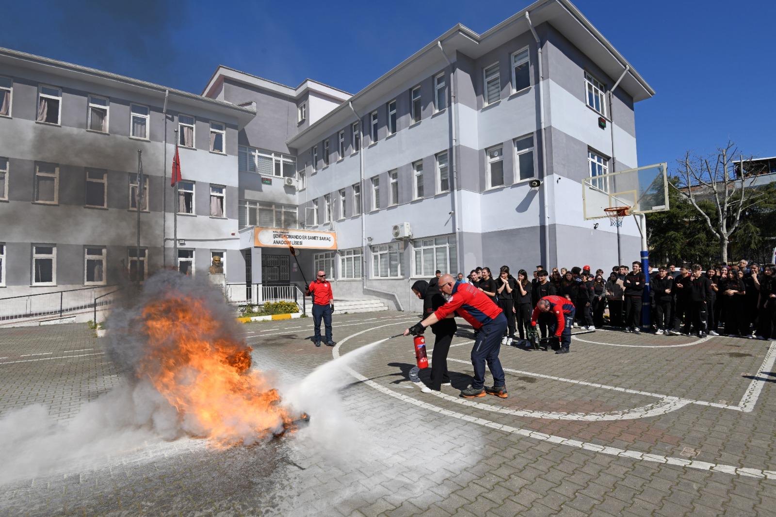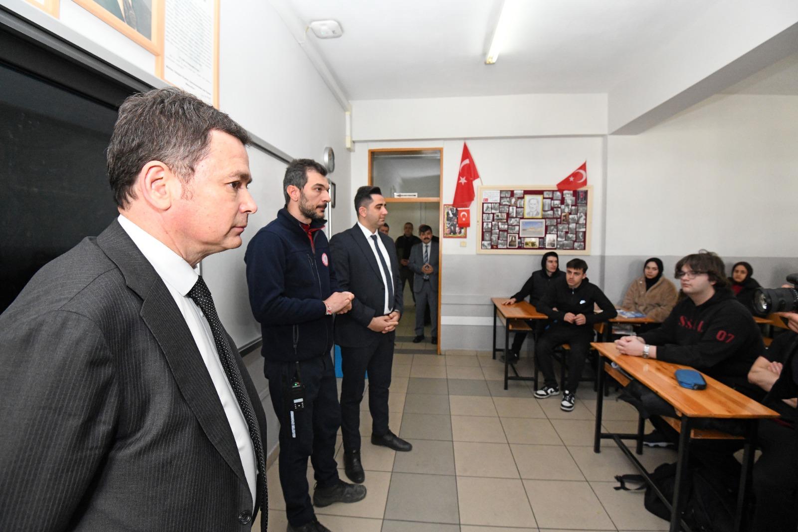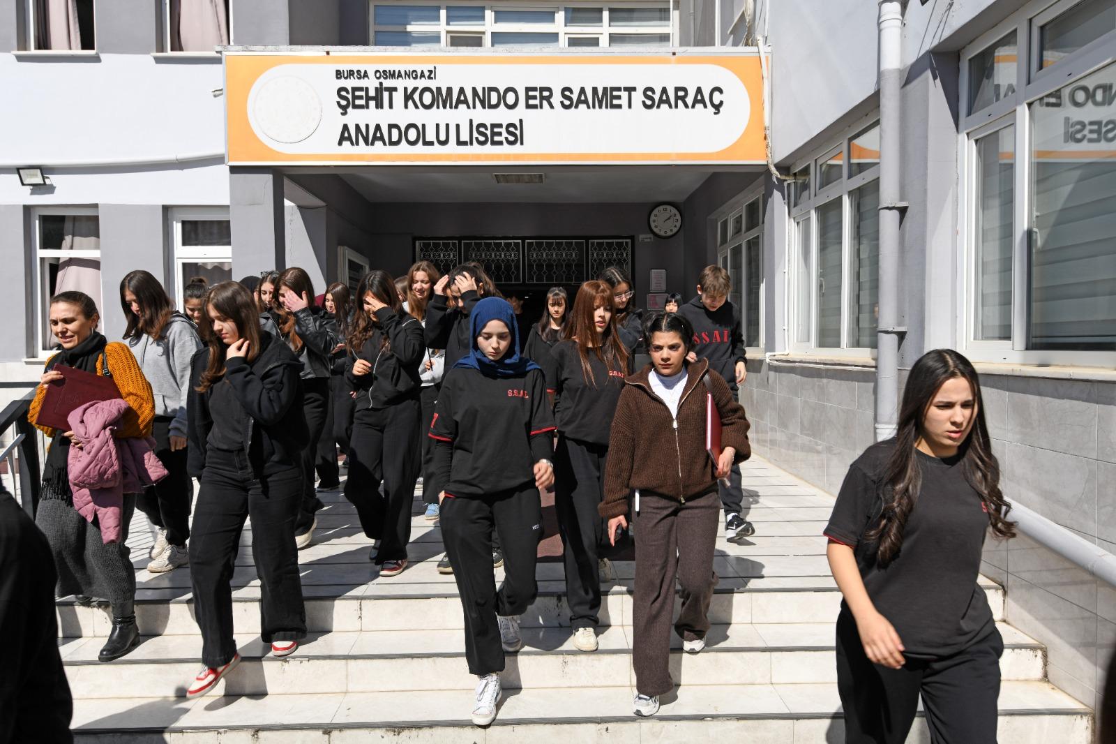 Osmangazi Belediye Başkanı Erkan Aydın, genç nesillerde afet bilincini artırmak amacıyla yürütülen eğitim ve tatbikat programı kapsamında Şehit Komando Er Samet Saraç Anadolu Lisesi öğrencileriyle bir araya geldi. Osmangazi Belediyesi Afet İşleri ve Risk Yönetimi Müdürlüğü tarafından düzenlenen, yaklaşık 900 öğrenci ile 55 personelin katılımıyla gerçekleştirilen kapsamlı organizasyonla öğrencilerin afetlere karşı hazırlıklı bireyler olarak yetişmesi hedeflendi.