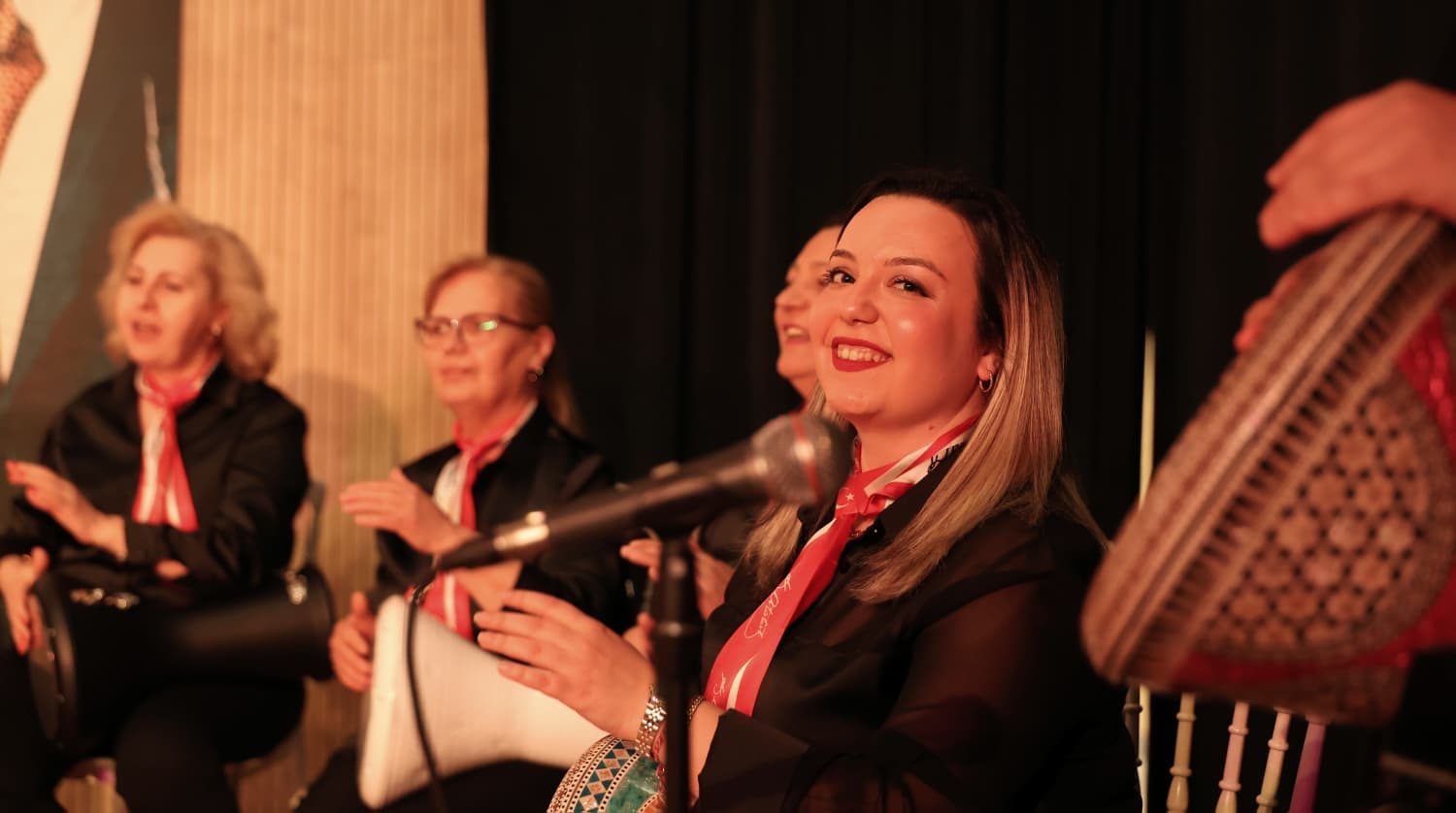 Kadınlara verdiği değer ve destekle her zaman öne çıkan Osmangazi Belediyesi, Ahenka Kadın Ritim Topluluğu ile birlikte muhteşem bir gösteriye imza attı.Bursa’da farklı meslek gruplarından kadınların 2 yıl önce bir araya gelerek kurduğu ritim topluluğu, sıfırdan aldıkları eğitimlerle profesyonel bir seviyeye ulaştı. Ahenka Kadın Ritim Topluluğu üyesi kadınlar, eğitim sonunda her biri usta müzisyenleri aratmayan sahne performansları sergilerken, Osmangazi Belediyesi ve Osmangazi Kent Konseyi ile birlikte ortak bir projeyi hayata kazandırdı.Osmangazi Gösteri Merkezi’nde düzenlenen konserde kadınlar, büyüleyici darbuka performanslarıyla izleyenlere unutulmaz bir gece yaşattı. Atatürk’ün sevdiği şarkıların seslendirilmesiyle başlayan konser, Ahenka Kadın Ritim Topluluğu’nun etkileyici ritim gösterisiyle tamamlandı. Kültür ve sanatın harmanlandığı bu özel geceyi kaçırmak istemeyen sanatseverler, salonu tamamen doldurarak ritimlere alkışlarıyla katıldı.“Hayatın Ritmini Birlikte Yaşamaya Çalışıyoruz”Hayatın ritmini birlikte yaşamak için yola çıktıklarını ifade eden Ahenka Ritim Topluluğu Eğitmeni Nebahat Tosun, “Projemiz başladığından bu yana grubumuzda her kesimden kadın yer alıyor. İki yıldır devam eden ritim eğitimlerimizle yeni gruplar da açılacak. Bu akşam darbuka performansıyla sahne aldık. Topluluğumuzdaki kadınların hiçbirinin daha önce müzik geçmişi yoktu. Ancak burada aldıkları eğitimlerle ritim tutmayı öğrendiler ve artık konserler veriyoruz. Kadınlarımız hayatın ritmini yakalamak istediklerini söylüyordu; şimdi bunu hep birlikte başarıyoruz. Konserimiz iki bölümden oluşuyor. İlk bölümde Atatürk’ün sevdiği şarkılarla başladık. Ardından bir zeybek gösterisi sahnelendi ve sonrasında kadınlarımızdan oluşan grubun ritim konseri yer aldı” şeklinde konuştu.“Burada Birçok Meslek Gurubundan Kadın Var”Katıldığı eğitimlerle darbuka çalmayı öğrenen Naime Kaya da, “Gurubumuzun içinde öğretmen, mühendis, ev hanımı ve birçok meslek gurubundan kadın var. Burada hem eğleniyor hem de verdiğimiz konserle insanları eğlendiriyoruz. Konserimizi izleyenler muhteşem bir gece geçirdi. Bu akşam Atatürk’ün sevdiği parçalar, Türk sanat müziği ve roman havası çaldık” ifadelerini kullandı.“Kadınların Her Zaman Yanındayız”Kadınların her zaman yanında olduklarını söyleyen Osmangazi Kent Konseyi Başkanı Sevim Sakallı ise şu açıklamalarda bulundu:“Kadınların sadece ev işleriyle uğraşmadığını, günlük hayatın dışında da başka uğraşlarda başarılı olduklarını bu akşam ortaya koydukları sahne performansıyla gösterdik. Buna uzun zamandır hazırlanıyorlar. Kadınlar bir araya gelerek bir ritim gurubu oluşturmuşlar. Osmangazi Kent Konseyi olarak kadınların bu projesine ortak olduk ve Osmangazi’de muhteşem bir etkinliğe imza attılar.”Gecenin sonunda Osmangazi Belediye Başkan Yardımcısı Mutlu Esendemir, Ahenka Kadın Ritim Topluluğu üyelerine günün anısına teşekkür plaketi takdim etti.Osmangazi Belediyesi Basın Yayın ve Halkla İlişkiler Müdürlüğü