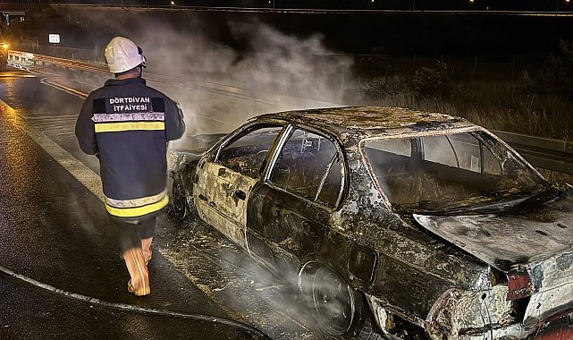 BOLU'da Anadolu Otoyolu'nda seyir halindeyken alev alan otomobil, yangında kullanılamaz hale geldi.Anadolu Otoyolu Ankara istikameti Dörtdivan gişeleri mevkiinde saat 00.30 sıralarında, hareket halindeki 41 RP 495 plakalı otomobil, alev aldı. Sürücü, otomobilini sağ şeride çekerek itfaiyeyi arayıp, yardım istedi. Otomobildeki yangın, bölgeye gelen Dörtdivan Belediyesi İtfaiye Amirliği ekibi tarafından söndürüldü. Otomobil kullanılamaz hale gelirken, yangınla ilgili inceleme başlatıldı.