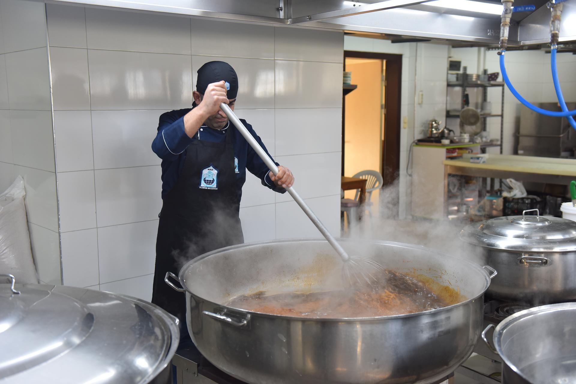 Yıldırım Belediyesi’nin, sosyal belediyecilik çalışmalarına dayanışma ve paylaşma ayı olan Ramazan’da da aratarak devam ediyor. Ramazan ayı ile birlikte ilçenin 14 farklı noktasında iftar sofraları kuran Yıldırım Belediyesi, her gün 3 bin 500 kişiyi iftar, yüzlerce kişiyi de sahur sofralarında buluşturuyor. Evlerinde yemek yapamayan vatandaşları da unutmayan Yıldırım Belediyesi, Yıldırım Beyazıt Aşevi’nde de günlük 250 kişiye sıcak yemek çıkarıyor. Aşevinde özenle hazırlanan yemekler, iftar vakti sıcak şekilde adreslere ulaştırılıyor. Yıldırım Belediyesi mobil hizmet araçları ise ilçenin farklı noktalarında, günlük 950 kişilik çorba, su ve hurma dağıtımı gerçekleştiriyor.