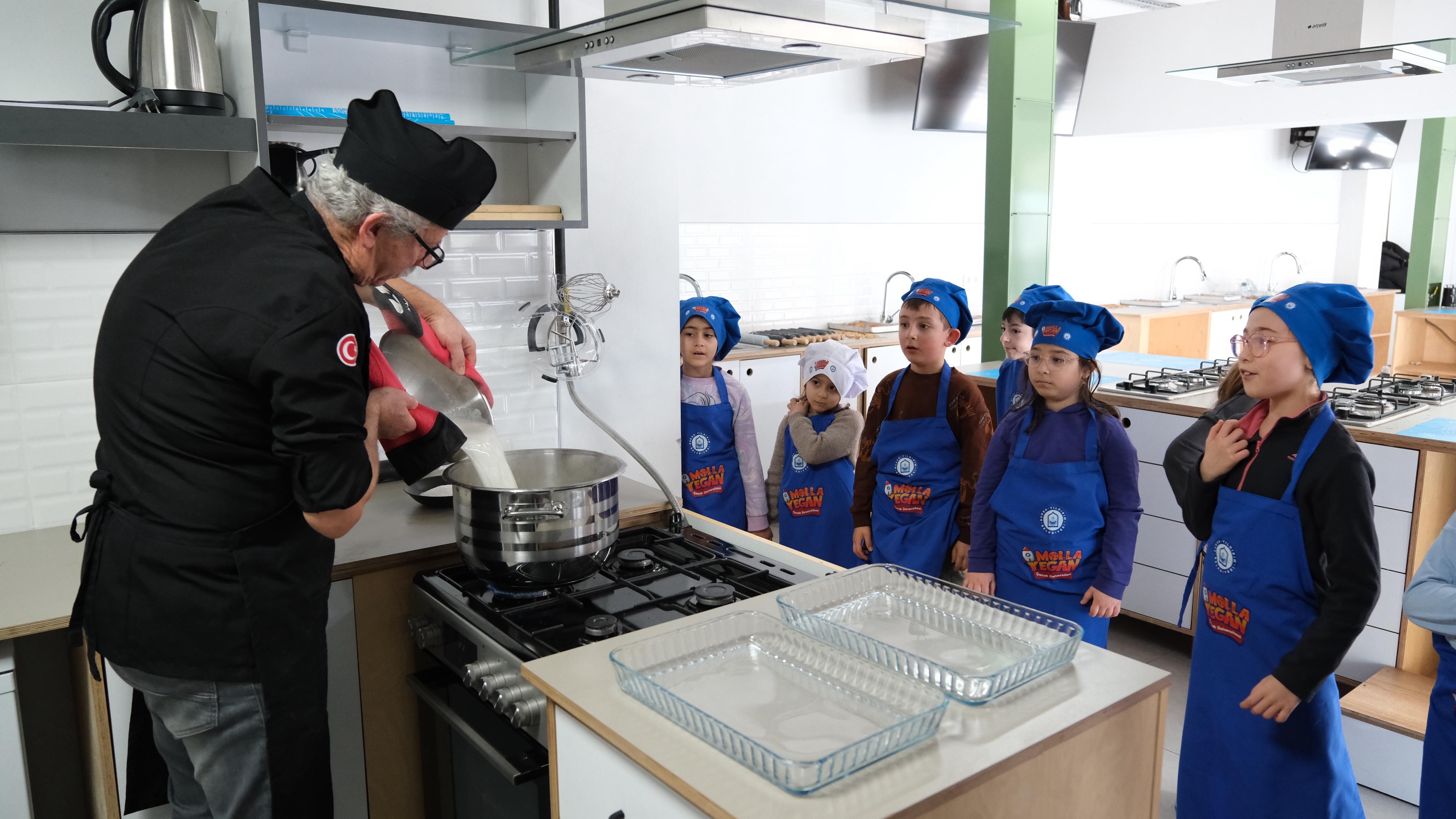 Yıldırım Belediyesi, Ramazan ayının manevi iklimini çocuklara hissettirmek için çalışmalarına devam ediyor. Molla Yegan Çocuk Üniversitesi’nde düzenlenen ‘Küçük Şeflerden Ramazan’a Özel Tatlılar’ etkinliği renkli görüntülere sahne oldu. Çocuklara paylaşma, dayanışma ve birlik ruhunu aşılamayı amaçlayan etkinlik kapsamında mutfağa giren çocuklar, geleneksel Türk mutfağının sevilen tatlılarından süt helvası ve şekerpare yapmayı öğrendi. Çocuklar yaptıkları tatlıları ise iftarda aileleri ile birlikte yediler.