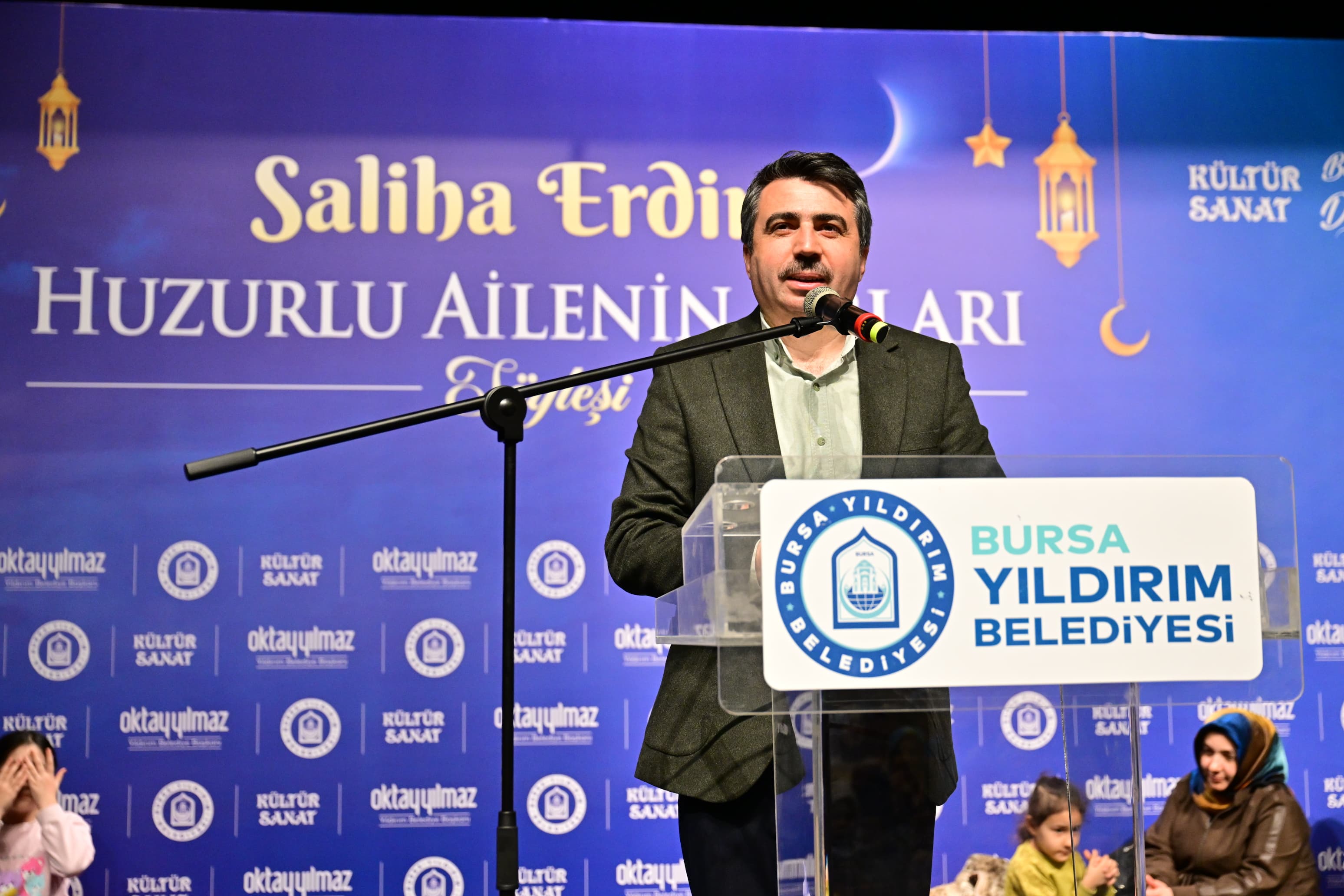 Yıldırım Belediyesi, Ramazan ayı etkinlikleri kapsamında Uzman Aile Danışmanı ve Yazar Saliha Erdim’i Yıldırımlılarla buluşturdu. Barış Manço Kültür Merkezi’nde düzenlenen ve Yıldırım Belediye Başkan Oktay Yılmaz’ın da katıldığı söyleşiye, vatandaşlar yoğun ilgi gösterdi. Programda ‘Huzurlu Ailenin Sırları’ üstüne konuşan Erdim; aile içi iletişim ve ailenin önemi üstüne tavsiyelerde bulundu.