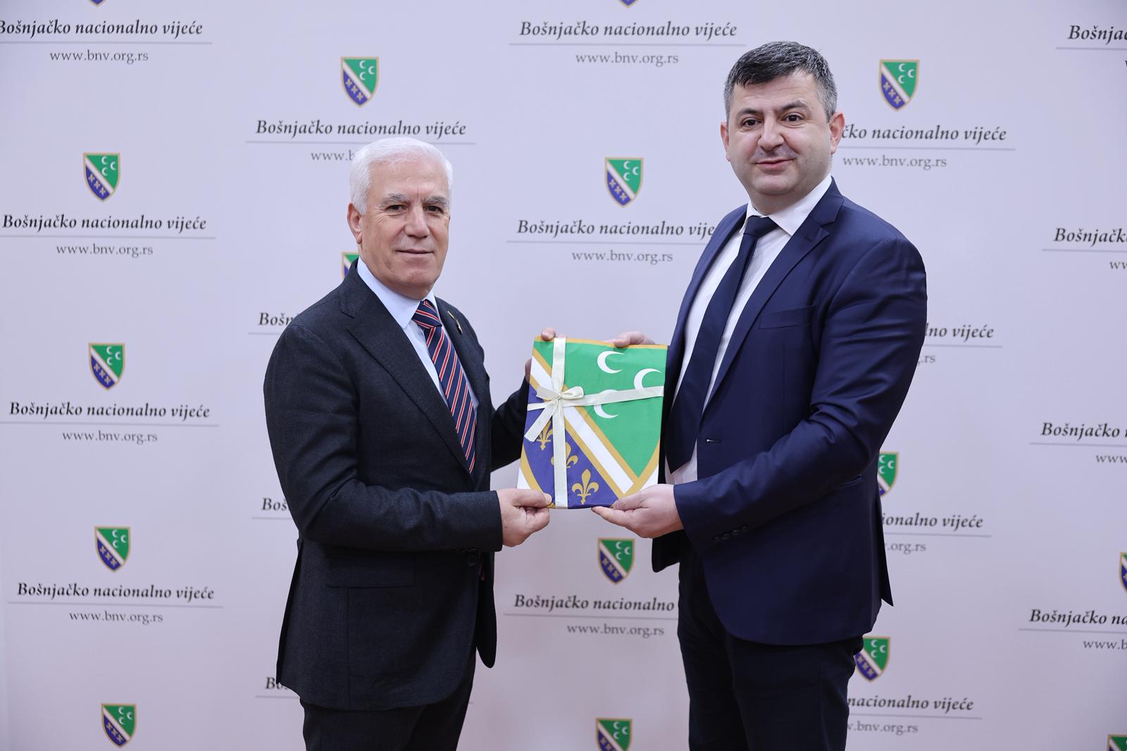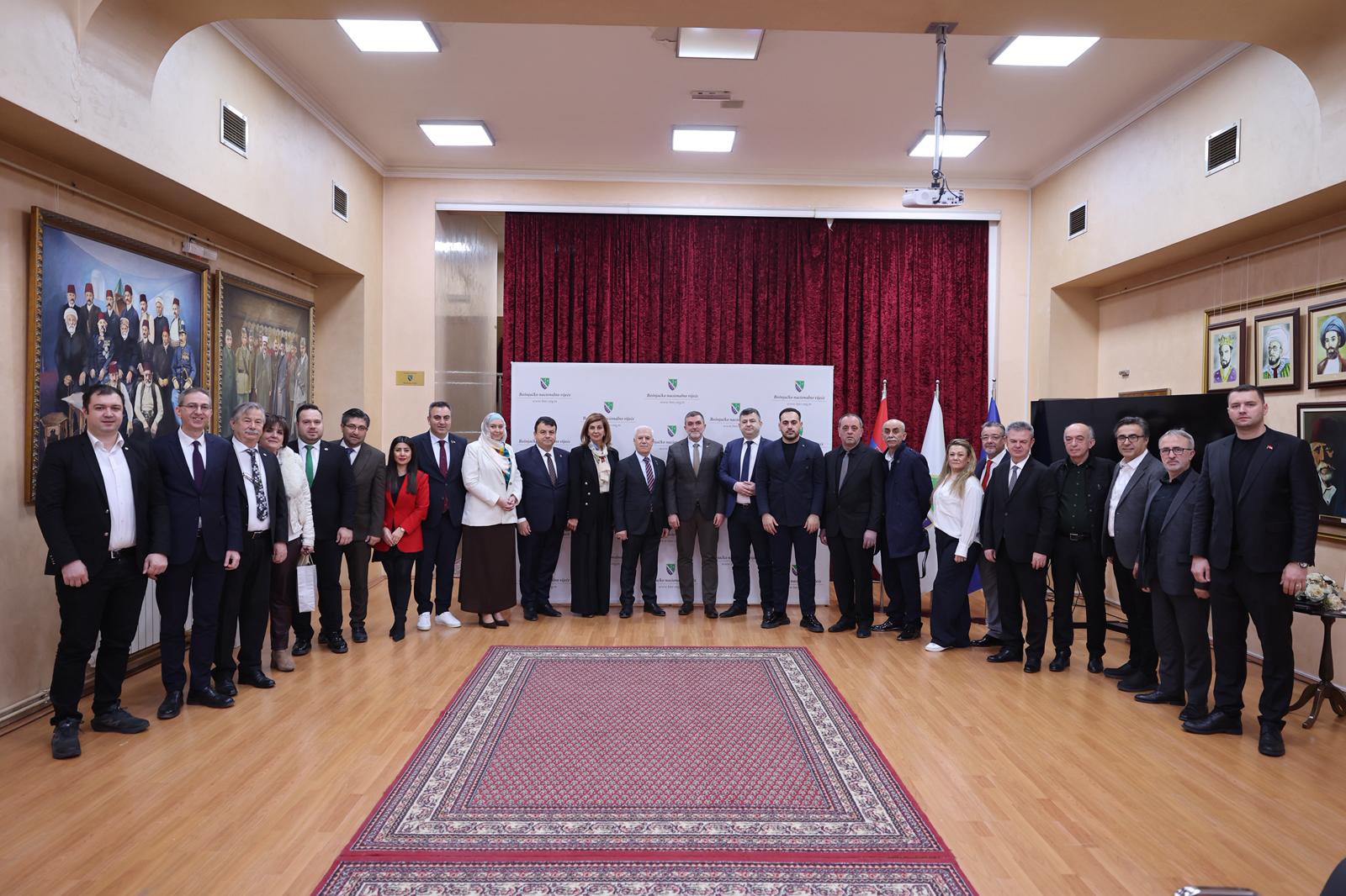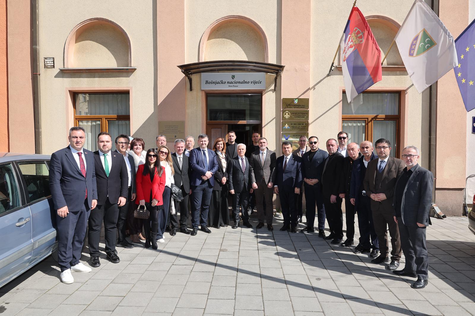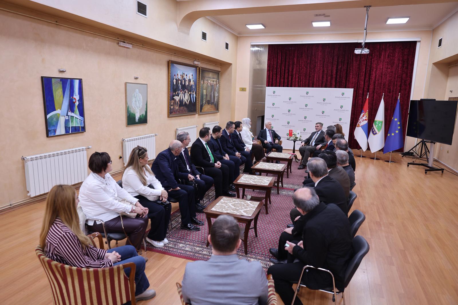 Bursa Büyükşehir Belediyesi, Ramazan ayının dayanışma ve paylaşma ruhunu, düzenlediği programlarla Balkanlarda da yaşatmaya devam ediyor. Bursa Büyükşehir Belediye Başkanı Mustafa Bozbey, Sancak bölgesinde düzenlenen Ramazan programı kapsamında Yeni Pazar’daki Boşnak Milli Konseyi Başkanı Fuad Baćićanin ile bir araya geldi. Ziyarette, CHP Bursa Milletvekili Hasan Öztürk, Sırbistan Bursa Fahri Konsolosu Zarif Alp, Bursa Bosna Sancak Derneği Başkanı Sadık Şengül, meclis üyeleri ve Balkan Rumeli Komisyonu üyeleri de yer aldı. Sırbistan’daki Boşnak toplumunun dili, kültürü ve eğitim haklarının korunması için yürüttükleri çalışmalar hakkında bilgi alan Başkan Bozbey, Boşnak kimliğinin yaşatılmasına katkı sunan faaliyetlerin önemine vurgu yaptı.