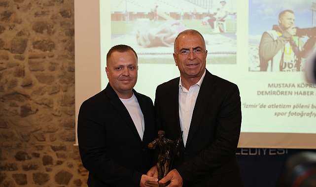 İZMİR, (DHA)- İZMİR Gazeteciler Cemiyeti (İGC) tarafından geleneksel olarak düzenlenen Şehit Gazeteci Hasan Tahsin Gazetecilik Yarışması'nda 'Spor Fotoğrafı' kategorisinde birincilik elde eden Demirören Haber Ajansı (DHA) muhabiri Mustafa Köprülü, ödülünü Gaziemir Belediye Başkanı Ünal Işık'ın elinden aldı