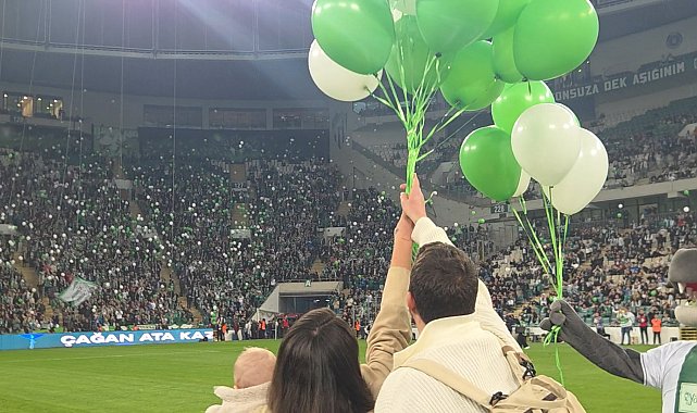 BURSA'da yaşayan Aleyna ve Ahmet Miraç Taran çiftinin, 18 günlükken SMA Tip-1 teşhisi konulan Çağan Ata'nın valilik onaylı kampanyasında mutlu sona ulaşıldı. Çağan Ata'nın bu mutlu gününde Bursaspor-Menemen FK maçı öncesi 40 bin taraftar önünde 20 bin balon bırakılarak kutlandı. Bursa'da yaşayan Aleyna ve Ahmet Miraç Taran çiftinin 6 aylık çocukları Çağan Ata, 18 günlükken SMA Tip-1 teşhisi konuldu. Çocuklarının gerekli tedaviyi alabilmesi için Bursa Valiliği'nden izin alarak yardım kampanyası başlatan aile, yaklaşık 6 ay sonra mutlu sona ulaştı. Kampanya döneminde destek veren Bursaspor'un eski yöneticilerinden Hakan Dinçtürk koordinesinde Çağan Ata için organizasyon düzenlendi. Ailesiyle birlikte Atatürk Spor Kompleksi Matlı Stadyumu'nda gelen Çağan Ata için Bursaspor-Menemen FK maç öncesi 20 bin balon bırakıldı. Çağan Ata ve ailesinin mutluluğuna statta bulunan yaklaşık 40 bin kişi eşlik etti.
