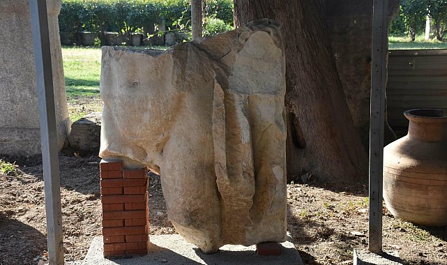 İZMİR'deki Smyrna Antik Kenti'nde yürütülen arkeolojik kazılarda 90 santimetre genişliğinde, 110 santimetre boyunda Roma dönemine ait 1800 yıllık bir heykelin gövdesi bulundu. Kazı Başkanı Prof. Dr. Akın Ersoy, "Heykelin bir imparatora mı yoksa bir tanrıya mı ait olduğu konusunda çalışmalarımız sürüyor. İmparator Hadrianus'a ait olma ihtimali yüksek. Ancak tanrısal bir kimlikse, Zeus'a da ait olabileceğini değerlendiriyoruz. Meslektaşımla aramızdaki tartışmalarda Büyük İskender'e ait bir heykel olabileceğini konuştuk. Çünkü Büyük İskender, İzmir'in kurucularından" dedi.Kültür ve Turizm Bakanlığı izniyle İzmir Katip Çelebi Üniversitesi (İKÇÜ) tarafından yürütülen Smyrna Antik Kenti'ndeki kazı çalışmaları, İzmir Büyükşehir Belediyesi, Yaşar Eğitim ve Kültür Vakfı, İzmir Ticaret Odası ve Güzel Enerji Akaryakıt A.Ş. destekleriyle sürüyor. İzmir merkezinde en büyük antik dönem agoralarından biri olan Smyrna Agorası ile Akdeniz'in en büyük tiyatrolarından biri olan Smyrna Tiyatrosu yapılan çalışmalar ile gün yüzüne çıkarılıyor. Kadifekale'den Kemeraltı'na kadar uzanan ve Büyük İskender tarafından 193 hektarlık alanda kurulan kentte yapılan arkeolojik kazılarla farklı dönemlere ait binlerce obje keşfediliyor. UNESCO tarafından 2020 yılında 'İzmir Tarihi Liman Kenti' adıyla oluşturulan miras alanının bir parçası olarak Dünya Mirası Geçici Listesi'ne dahil edilen Smyrna Antik Kenti'nde yapılan kazılarda, belden üst kısmı olmayan eni 90 santimetre boyu ise 150 santimetre olan heykel bulundu.'İMPARATOR HADRİANUS'A AİT OLMA İHTİMALİ YÜKSEK'Çalışmalarla ilgili bilgi veren Kazı Başkanı Prof. Dr. Akın Ersoy, "Özellikle Smyrna Tiyatrosu'nda kazı çalışmalarını devam ettirmekteyiz. Kazılarda pek çok objeye ulaşıyoruz. Birçok heykel ve kabartma parçasına da ulaşıldı. Bunlardan biri ise, araştırma yapmak üzerine kazı evine getirdiğimiz heykel. Fransız meslektaşımız bize heykelin kimliklendirmesinde destek veriyor. Bunun bir imparatora mı tanrıya mı ait olduğu konusunda çalışmalarımız sürüyor. İmparator Hadrianus'a ait olma ihtimali yüksek. Ancak tanrısal bir kimlikse, Zeus'a da ait olabileceğini değerlendiriyoruz. Meslektaşımla aramızdaki tartışmalarda, Büyük İskender'e ait bir heykel de olabileceğini konuştuk. Çünkü Büyük İskender, İzmir'in kurucularından. Bayraklı Smyrna'sı, merkezi Konak Kadifekale ve Kemeraltı arasındaki yamaçlara taşındı. Dolayısıyla Büyük İskender'e ait olabileceğini de değerlendirmekteyiz. Çalışmalarımızı bu çerçevede sürdürüyoruz" dedi. 'İNSAN ÖLÇEĞİNİN ÜSTÜNDE BOYUTLARA SAHİP BİR HEYKEL'Prof. Dr. Ersoy, "Heykelin üst kısmı yok. Dolomit taş malzemeden yapılmış. M.S. 2'nci yüzyılda yapılmış. 1800 yıllık bir eser. Heykelin diğer kısmı da belki kazılarda bulunacaktır. İnsan ölçeğinin üstünde boyutlara sahip bir heykel. Sahne binasında bir nişin içerisinde görkemli bir şekilde durduğunu varsayıyoruz. Heykelin mevcut parçasının genişliği 90 santimetre, boyu ise 110 santimetre" diye konuştu.'NADİR RASTLANAN BİR HEYKEL'Heykelin kimlik araştırmasına destek veren Fransa Louvre Müzesi Heykel Bölümü yöneticilerinden Uzman Ludovic Laugier de "Vücut yapısı nedeniyle heykelin Herkül figürü olduğunu düşündüm. Ancak sonra Zeus heykeli olabileceği ihtimali üzerinde durmaya başladık. Tiyatrolarda gördüğümüz diğer heykeller gibi kaliteli, nadir rastlanan bir heykel. Elindeki Medusa figürü, Zeus için koruma sembolü olarak görülüyor. Oldukça nadir. Avrupa'da birkaç müzede örnekleri var. Özellikle bir tiyatro alanında böyle bir eserin bulunması alışılmadık bir durum" dedi.
