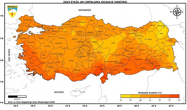 METEOROLOJİ Genel Müdürlüğü'nün sıcaklık analizi raporuna göre, 2025 yılı Eylül ayı ortalama sıcaklığı 0.8 derece artışla 21.7 derece olarak ölçüldü. 2025 Eylül'ü, son 55 yılın en sıcak 11'inci ayı olarak kayıtlara geçti.Meteoroloji Genel Müdürlüğü, 2025 yılı Eylül ayı sıcaklık analizi raporunu yayımladı. Buna göre, Türkiye genelinde 1991-2020 normalleri eylül ayı ortalama sıcaklığı 20,9 dereceyken, 2025 Eylül ayında 0.8 derecelik artışla 21.7 dereceye yükseldi. Bu değer, son 55 yılın en sıcak 11'inci eylül ayı olarak kayıtlara geçti.EN YÜKSEK SICAKLIK CİZRE'DE Öte yandan, Türkiye'de iklim değerlendirilmesinde kullanılan 220 istasyonda eylül ayında sıcaklık değerleri ölçüldü. Buna göre, Akdeniz Bölgesi'nin geneli, Edirne, Kadıköy, Kocaeli, Gökçeada, Çanakkale, Bursa, Yalova, Ayvalık, Dikili, Manisa, Uşak, İzmir, Çeşme, Kuşadası, Aydın, Denizli, Bodrum, Muğla, Marmaris, Uzunköprü, İpsala, Burhaniye, Bergama, Gediz, Seferihisar, Ödemiş, Nazilli ve Yatağan çevrelerinde sıcaklık mevsim normallerinin üzerinde, yurdun diğer kesimlerinde ise mevsim normalleri civarında gerçekleşti. 2025 yılı Eylül ayında ekstrem sıcaklıklar, sıfırın altında 2,4 derece ile Erzurum'da, en yüksek sıcaklık ise 44,6 derece ile Cizre'de ölçüldü.