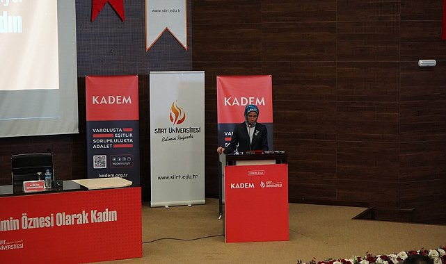 KADEM Mütevelli Heyeti Başkanı Sümeyye Erdoğan Bayraktar, Siirt Üniversitesi'nde düzenlenen, 'Toplumsal Huzur Sürecinde Türkiye: Değişimin Öznesi Olarak Kadın' konulu panele katıldı. Programda ayrıca Vali Kemal Kızılkaya, Siirt Üniversitesi Rektörü Prof. Dr. Nihat Şındak, çok sayıda davetli ve öğrenciler yer aldı. Saygı duruşu ve İstiklal Marşı'nın okunmasıyla başlayan programda konuşan Sümeyye Erdoğan Bayraktar, yaşanan acılara dikkat çekerek, "Çok ağır bedeller ödendi. Ancak terörün en ağır bedelini yine en çok kadınlar taşıdı. Eşlerini, çocuklarını kaybeden, yuvaları yıkılan, şiddete uğrayan, yalnız bırakılan. Terörden kaçmak için göçe maruz bırakılan kadınlar, bir yandan da aileyi ayakta, toplumu bir arada tutmak için mücadele verdi. Kadın toplumsal iyileşmenin ve barışın kurucusu olan en önemli faktörlerden biri oldu. Kadın, her dönemde terörün açtığı yaraları saran, aynı zamanda toplumsal iyileşmenin ve barışın kurucusu olan en önemli faktörlerden biri oldu" dedi.