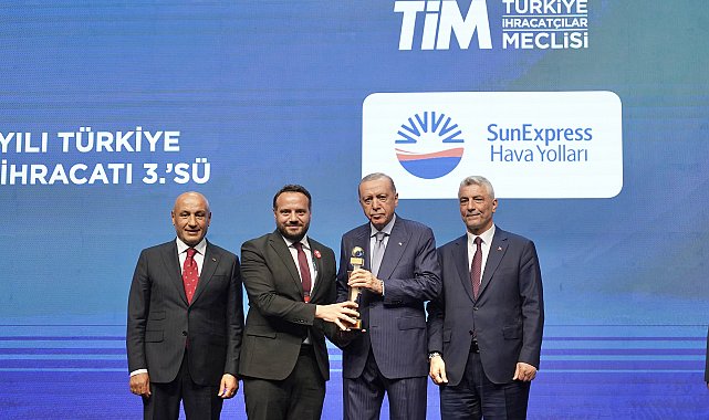 TÜRK Hava Yolları ve Lufthansa'nın ortak kuruluşu SunExpress, Türkiye İhracatçılar Meclisi (TİM) tarafından düzenlenen İhracatın Şampiyonları Ödül Töreni'nde, 2024 yılında Türkiye genelinde hizmet ihracatına en fazla katkı sağlayan ilk üç şirket arasında yer alarak ödüle layık görüldü.SunExpress, 2024 yılında yaklaşık 15 milyon yolcu taşıyarak yeni bir rekora imza attığını ve Türkiye'ye sağladığı 2,28 milyar dolarlık döviz getirisiyle hizmet ihracatında bu yıl da ilk üç şirket arasında yer aldığını duyurdu.SunExpress Genel Müdür Yardımcısı Tuncay Eminoğlu'na ödülü Cumhurbaşkanı Recep Tayyip Erdoğan, Ticaret Bakanı Prof. Dr. Ömer Bolat ve TİM Başkanı Mustafa Gültepe verdi. SunExpress Genel Müdür Yardımcısı Tuncay Eminoğlu, "35 yıldır Türkiye turizmi, ekonomisi ve istihdamına katkı sunmaya devam ediyoruz. 2024 yılında yaklaşık 15 milyon yolcu taşıyarak kendi rekorumuzu yeniledik ve ülkemizin turizm hedeflerine ulaşmasına destek olduk. Ayrıca, Türkiye'ye sağladığımız döviz getirisini geçen yıla göre yüzde 20 artırarak 2,28 milyar dolara ulaştırdık. Aldığımız bu ödülle, hizmet ihracatında ülkemizin öncü şirketlerinden biri olmaya devam etmenin gururunu yaşıyoruz" dedi.35 ülkede 237 noktaya tarifeli seferler gerçekleştiren hava yolu, 2025 yılında yaklaşık 17 milyon yolcu taşıma hedefiyle Türkiye'nin turizm hedeflerine katkısını sürdürmeyi amaçlıyor.