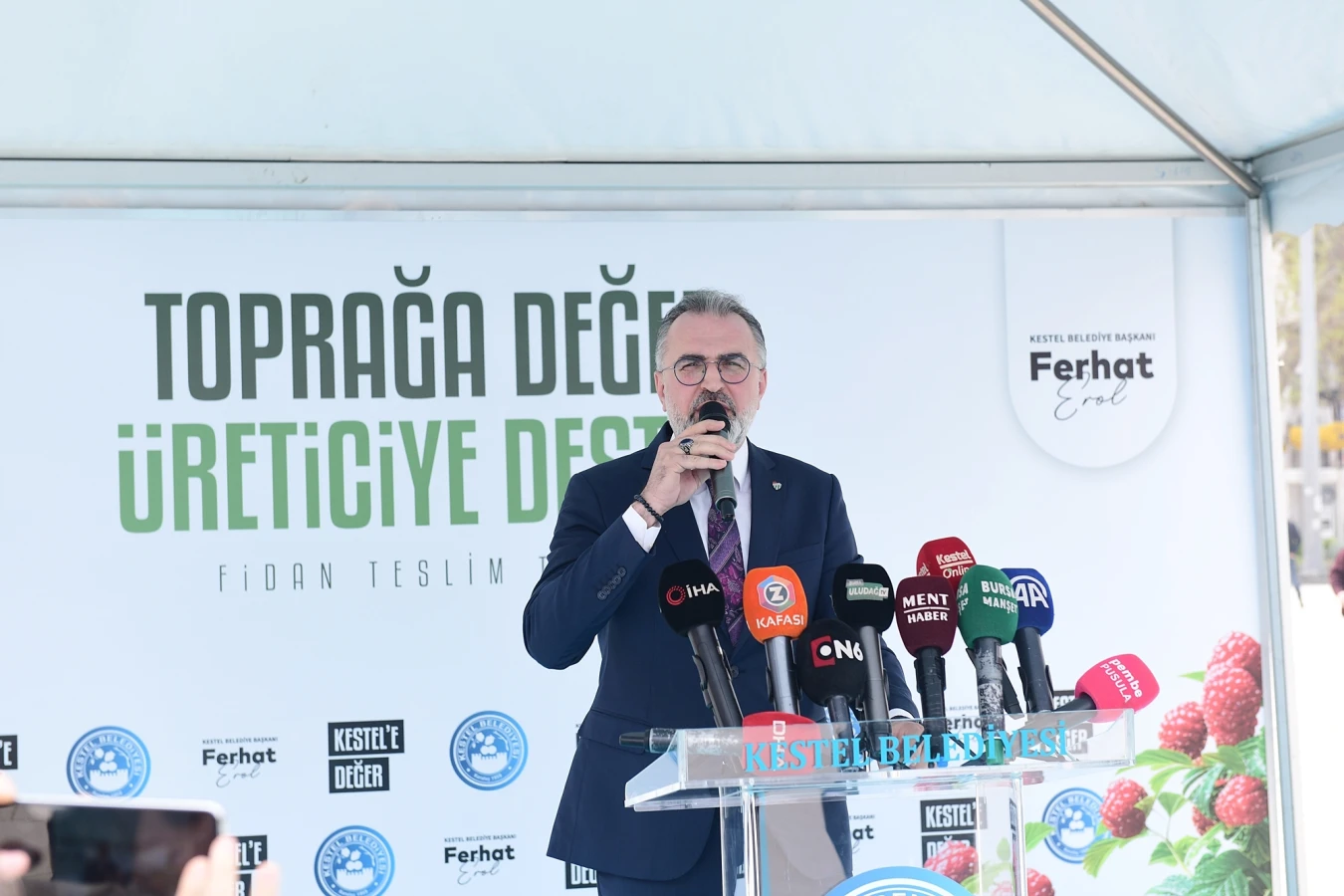 Ferhat Erol 1979 Erzurum doğumlu, Kestel’de ikamet etmektedir. İlk, orta ve lise tahsilini Kestel\'de, Lisans eğitimini İşletme Yönetimi bölümünde, Yüksek Lisans eğitimini ise Politika Bilimi bölümünde tamamladı.Siyasi hayatına 2001 yılında AK Parti ile Kestel\'de kurucu gençlik kolları başkan yardımcısı olarak başladı. 2004-2007 yılları arasında gençlik kolları başkanlığı, 2011-2014 ana kademe tanıtım medya başkanlığı, 2014-2017 ilçe teşkilat başkanlığı ve son olarak AK Parti Bursa İl Başkan Yardımcılığında görev yaptı. Birçok sivil toplum kuruluşlarında görev aldı. Kestel Belediyespor’da 10 yıl başkan yardımcılığı yaptı. Kestel İmam Hatipler Yaptırma Yaşatma Derneği\'nin kurucusudur. BİHMED Kestel sorumlusu aynı zamanda eğitime destek platformu Kestel koordinatörlük görevinde bulunmaktadır. Kestel Gençlik ve Dağcılık Spor Kulübü\'nün kurucu başkanı olarak gençlerin sporla buluşmasına öncülük etmektedir. Ayrıca, Türk Kızılayı Bursa Şubesi yönetiminde yer alarak sosyal yardım projelerine de destek vermektedir.Yurt içi / yurt dışı ticaret yapan ve inşaat sektöründe devam etmekte olan şirketinin yönetimindedir. Evli ve 3 çocuk babasıdır.- Kestelli çiftçiye kaliteli Ahududu üretmesi için geliştirilmiş 6 bin fidan desteği verildi Tarım Şehri yeşil Bursa’nın Kestel ilçesinde, Türkiye’nin tarımsal üretim vizyonunu güçlendirecek adeta tarım seferberliği olan önemli bir projeye imza atıldı.Türkiye’nin ahududu üretiminde yüzde 80’lere varan üretim kapasitesini artırmak ve dünya ölçeğinde söz sahibi olması adına Kestel Belediyesi 6 tarım koperatifine geliştirdiği 6 bin ahududu fidanı dağıtımını yaptı. Meydan Kestel’de düzenlenen fidan teslim töreni; Kestel Belediye Başkanı Ferhat Erol’un ev sahipliğinde, Kestel Kaymakamı Recep Öztürk, AK Parti Bursa İl Başkanı Davut Gürkan ve çok sayıda üreticinin katılımıyla gerçekleştirildi.AHUDUDU ÜRETİMİNDE YÜKSEK VERİM HEDEFİİlçenin tarımsal potansiyelini değerlendirmeyi amaçlayan çalışma kapsamında üretimin artırılması, Avrupa standartlarında yeni çeşitlerin kazandırılması ve en yüksek verimi sağlayan türün belirlenmesi için 6 tarımsal kooperatife toplam 6 bin fidan teslim edildi. Programda konuşan Kestel Belediye Başkanı Ferhat Erol, Kestel’in tarımsal potansiyeline dikkat çekerek üretimi artırmaya yönelik çalışmaların kararlılıkla sürdüğünü belirtti. Bu kapsamda başlatılan proje ile ahududu üretiminde verimin artırılması, Avrupa standartlarında yeni çeşitlerin ilçeye kazandırılması ve en yüksek verim sağlayan türün belirlenmesinin hedeflendiği ifade edildi. Proje çerçevesinde ilçede farklı rakımlarda bulunan 6 mahallede, üretici kooperatifleriyle iş birliği yapılarak her birinde 1’er dönümlük alanlarda 4 farklı ahududu çeşidinin denemeye alındığı bildirildi. Çalışmayla birlikte farklı iklim ve toprak koşullarında ürün performansının bilimsel olarak gözlemleneceği kaydedildi. Elde edilecek veriler doğrultusunda en verimli ve ekonomik çeşidin belirlenerek ilçe genelinde yaygınlaştırılmasının hedeflendiği, ülkemizde yüzde 80 ahududu üretimine sahip Kestel’in dünya pazarında da önemli seviyeye gelerek örnek bir merkez haline getirilmesinin amaçlandığı aktarıldı.ULUSLARARASI İŞ BİRLİKLERİYLE ÜRETİM GÜÇLENİYOR Tarımın stratejik bir alan olarak değerlendirildiğini belirten Başkan Erol, çalışmaların yalnızca yerel ölçekte değil uluslararası düzeyde de sürdürüldüğünü ifade etti. Bu kapsamda üreticilerle birlikte gerçekleştirilen Sırbistan ziyaretinde modern üretim tekniklerinin incelendiği, ayrıca Japon heyetin ilçede ağırlanarak üretim kapasitesi ve ihracat potansiyelinin tanıtıldığı belirtildi. Ulusal ve uluslararası fuarlarda yer alınarak üreticilerin yeni pazarlara açılmasının desteklendiğini vurgulayan Başkan Erol, üretimin güçlenmesiyle birlikte Kestel’in ekonomik anlamda daha güçlü bir konuma taşınacağını kaydetti.BAŞKAN EROL, “ÜRETEN ŞEHİRLER BÜYÜR” Üretimin kalkınmadaki rolüne dikkat çeken Kestel Belediye Başkanı Ferhat Erol, üreticinin desteklenmeye devam edileceğini belirterek, “Üreten şehirler büyür, güçlenir ve geleceğe daha güvenle yürür” anlayışıyla çalışmaların sürdürüleceğini ifade etti. Kestel Belediyesi, yaptığı çalışmalarla ve üretimi destekleyen projelerle hem yerel kalkınmaya, hem de ülke ekonomisine katkı sunmaya devam edecek. Kozluören Tarımsal Kalkınma Kooperatif Başkanı Hüseyin Özdaş, “Türkiye’ye 36 yıl öncesinde ilk gelen Ahududu fidelerinden üretim yapan Kestel’in 12 köyünden bir tanesiyiz. Ahududu üretiminde potansiyeli olan bir şehire sahibiz. Hedefimiz Türkiye’de ve dünyada bir numara olmak.Kestel Belediyemizin biz çiftçilere verdiği desteğe teşekkür ediyoruz” dedi. Alaçam Tarımsal Kalkınma Kooperatif Başkanı Necati Güleç, “Bugün burda olmamızın nedeni 36 yıldır ürettiğimiz Ahududu’nun kurumalar ve verim düşüklüğü nedeniyle Kestel Belediye Başkanımız’a bu durum ilettiğimizde park bahçeler müdürlüğü ile birlikte bu konuya el atıp sahip çıkıldı. Geçen yıl Sırbistan’a doğru üretimin nasıl yapılacağı hangi fideler ile nasıl üretimi ve kaliteyi artıracağımızı konusunda bilgilendik. İnşallah 1200 kilodan 500 kiloya inen rekolte yeniden 1200 ile 1500 arasına getirmeyi hedefleyip yurt dışına ihracatın önünü açmaya çalışacağız” diye konuştu. Kestel Belediyesi Ziraat Mühendisi Raif Köksöken, “Ahududu’nda ülkemizin yüzde 80’ine Kestel olarak hitap ediyoruz. Altı farklı kooperatifimizle 6 bin adet yeni geliştirilmiş fidanımızla üretimi dektekliyoruz. Çalışmalarımız devam ediy