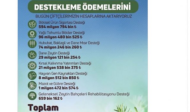 TARIM ve Orman Bakanlığı, 826 milyon 825 bin TL tarımsal destekleme ödemesinin bugün çiftçilerin hesaplarına aktarılacağını açıkladı.Bakanlığın sosyal medya hesabından yapılan açıklamada, "826 milyon 825 bin TL tarımsal destekleme ödemesini bugün çiftçilerimizin hesaplarına aktarıyoruz. Hayırlı ve bereketli olsun" ifadelerine yer verildi.