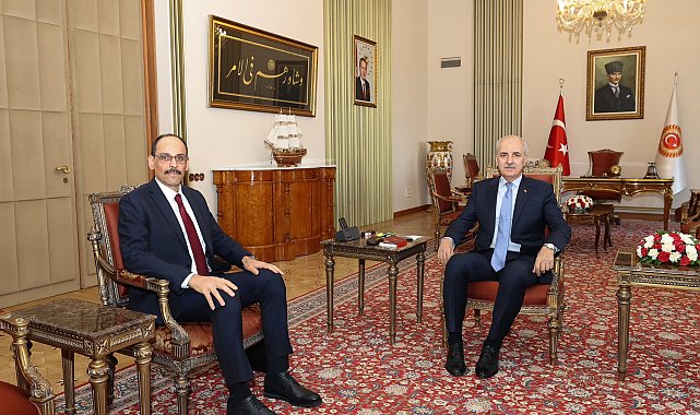 TÜRKİYE Büyük Millet Meclisi Başkanı Numan Kurtulmuş, Milli İstihbarat Teşkilatı (MİT) Başkanı İbrahim Kalın'ı kabul etti.TBMM'nin sosyal medya hesabından yapılan açıklamada, "Türkiye Büyük Millet Meclisi Başkanımız Numan Kurtulmuş, Milli İstihbarat Teşkilatı Başkanı İbrahim Kalın'ı kabul etti. Kabulde, MİT Başkanı Kalın, Terörsüz Türkiye sürecinde gelinen aşamaya ilişkin TBMM Başkanımız Kurtulmuş'a kapsamlı sunum yaptı. Ayrıca kabulde, silahların teslim edilmeye başlanması ve sonrasında izlenecek yol haritası ile TBMM'de Terörsüz Türkiye süreci kapsamında kurulması planlanan komisyona ilişkin de değerlendirmelerde bulunuldu" denildi.