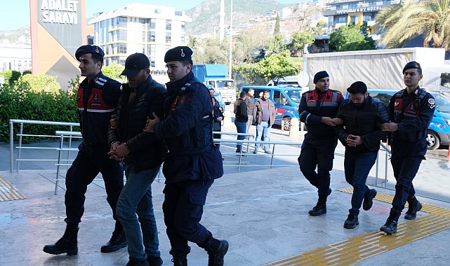 Operasyonun Alanya ayağında gözaltına alınan 1'i kadın 7 şüpheli ise işlemlerinin ardından bugün adliyeye sevk edildi. Jandarma eşliğinde geniş güvenlik önlemleri altında Alanya Adliyesi'ne getirilen 7 şüphelinin işlemlerinin sürdüğü öğrenildi.